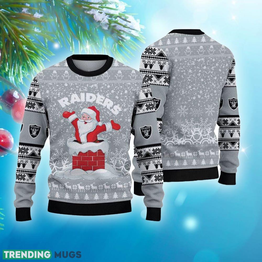 Designed with a touch of humor, this sweater features a hilarious Santa Claus sporting the iconic Raiders logo and colors. It’s a fun and unique way to display your team spirit while celebrating the most wonderful time of the year.