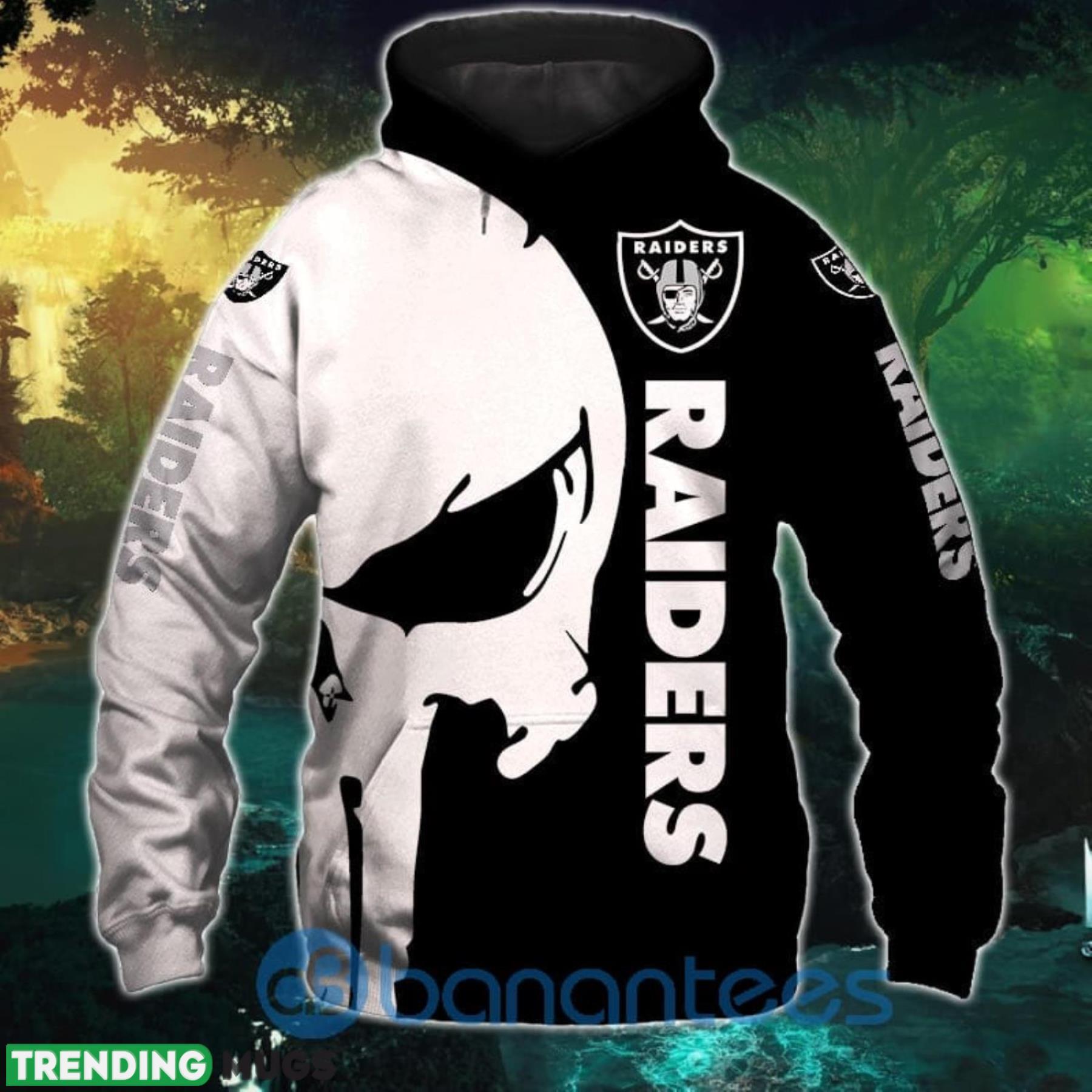 Introducing the Las Vegas Raiders Skull Design Full Printed 3D Hoodie Zip Hoodie! This stylish and comfortable hoodie is perfect for any Raiders fan. It features a full-color print of the Raiders logo on the front, and a smaller print on the back. The hoodie also has two pockets on the front, and a zip-up closure. Made from 100% polyester, this hoodie is machine-washable and perfect for any fan of the Las Vegas Raiders.