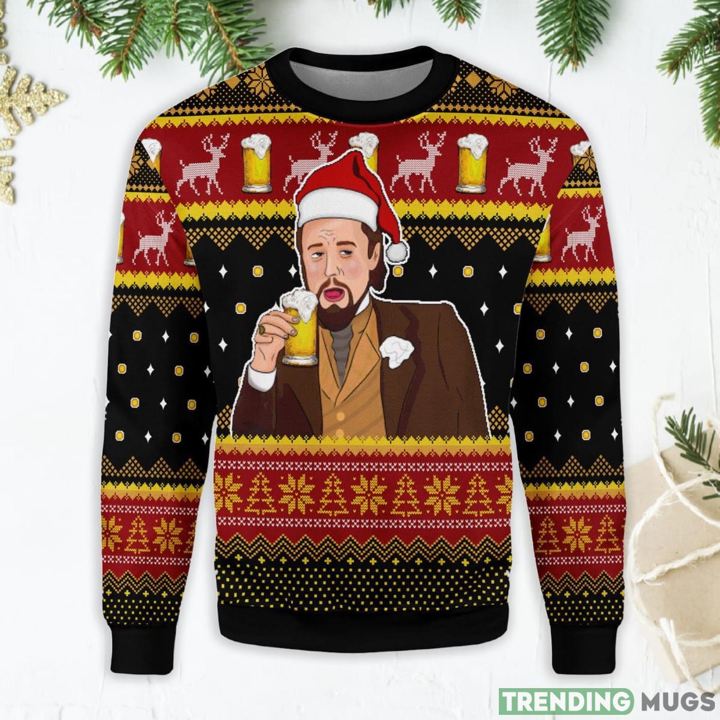 Leo Laughing Meme Drinking Bear Ugly Christmas Sweater Informations: