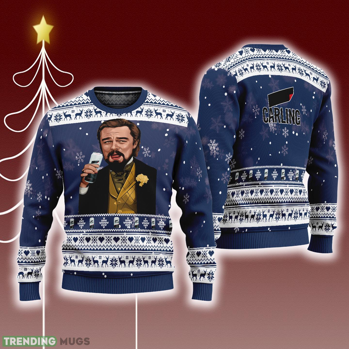 Whether you’re attending an ugly sweater party or simply looking to add some fun to your holiday wardrobe, our Leonardo Dicaprio Drink Beer Carling Navy Funny Ugly Christmas Sweater is a must-have. It’s the perfect conversation starter and a unique gift for any Leonardo Dicaprio fan in your life.