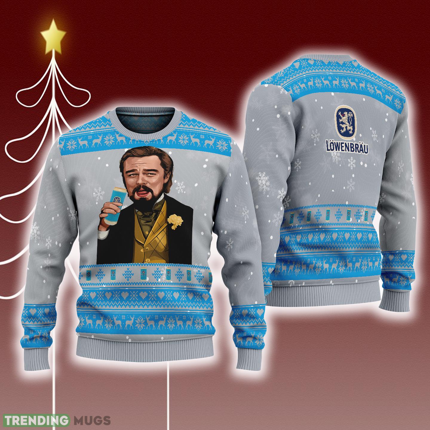 The combination of the classic Lowenbrau logo with Leonardo Dicaprio’s iconic image creates a one-of-a-kind design that is sure to turn heads at any Christmas party or gathering. Whether you’re a die-hard fan or simply appreciate a good laugh, this sweater is a must-have addition to your winter wardrobe.