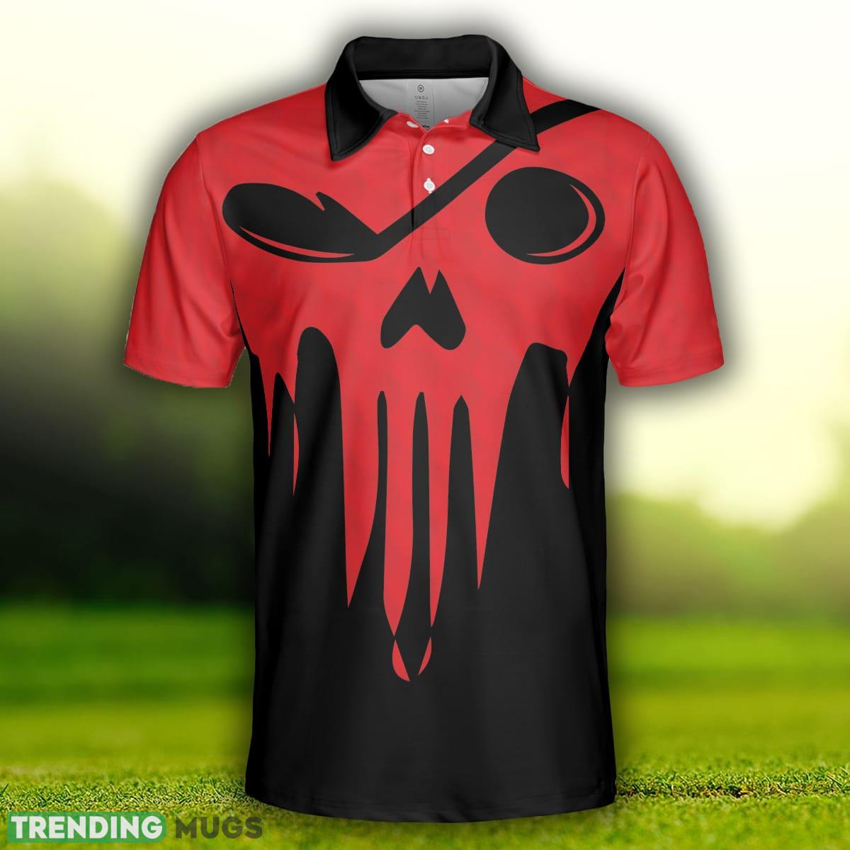 The Less Talk More Golfing Scary Skull Golf Shirt is the perfect blend of style, comfort, and golfing prowess. This Black And Red Golfing Shirt Design Polo Shirt is designed to make a bold statement on the green, giving you the confidence to conquer every swing.
