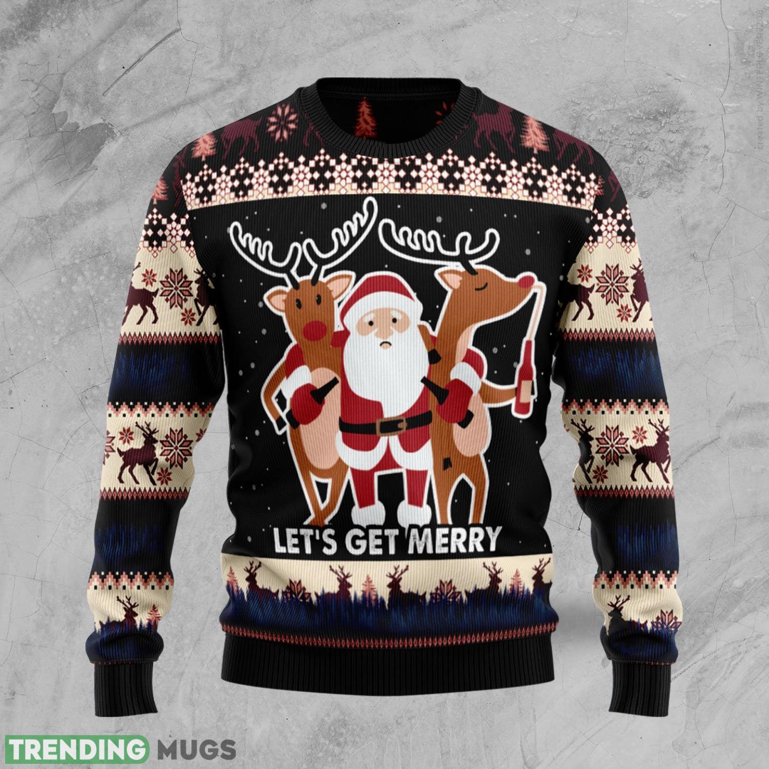 Let‘S Get Merry Funny Santa And Reindeer Ugly Christmas Sweater Informations: