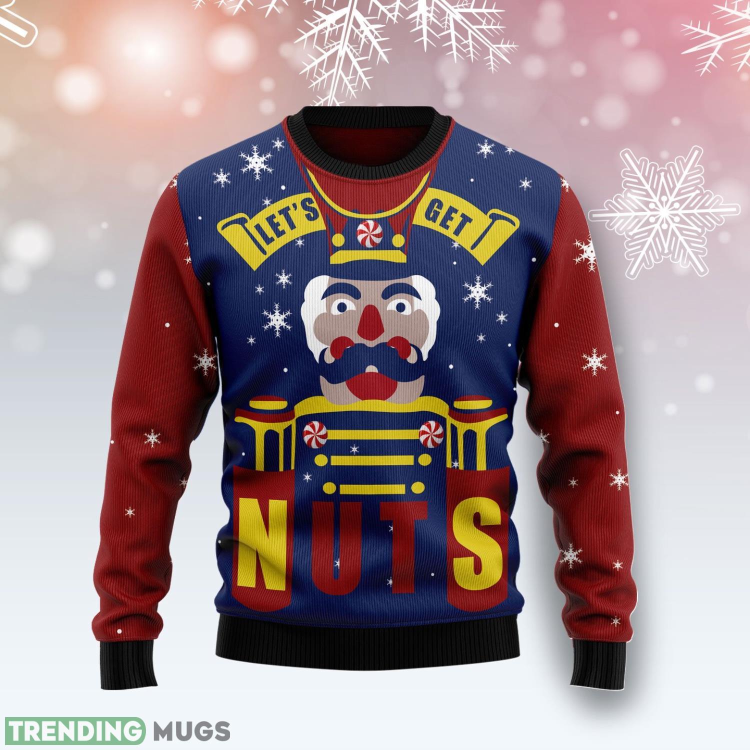 Whether you’re looking to spread some holiday cheer, win the “ugly sweater” contest, or simply want to brighten up your wardrobe, our Let’s Get Nuts Nutcracker Funny Gift Ugly Christmas Sweater is the ultimate choice. Don’t miss out on this must-have holiday fashion statement – order yours today and get ready to have a cracking good time!