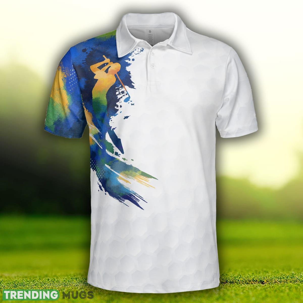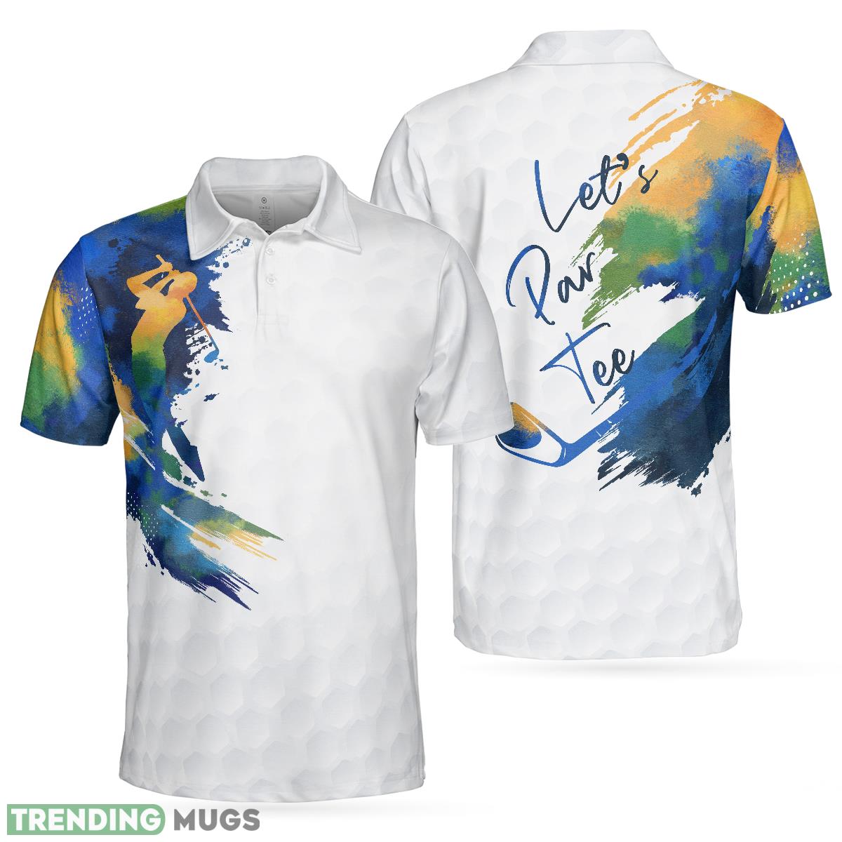 Let’s Par Tee Colorful Water Color Golf Short Sleeve, White Golf Shirt Polo Shirt Information:
