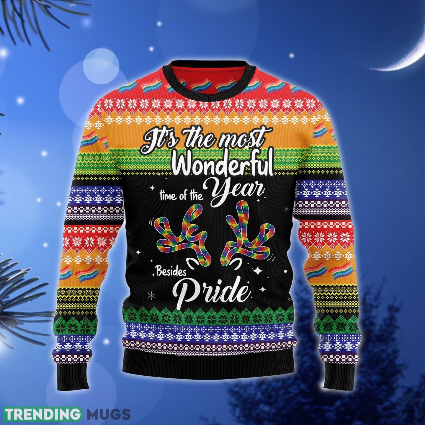Get ready to spread some holiday cheer with our vibrant and festive LGBT Beside Pride Ugly Christmas Sweater! This eye-catching sweater is not only a perfect gift for yourself or your loved ones, but it also allows you to celebrate the season while showcasing your support for the LGBTQ+ community.