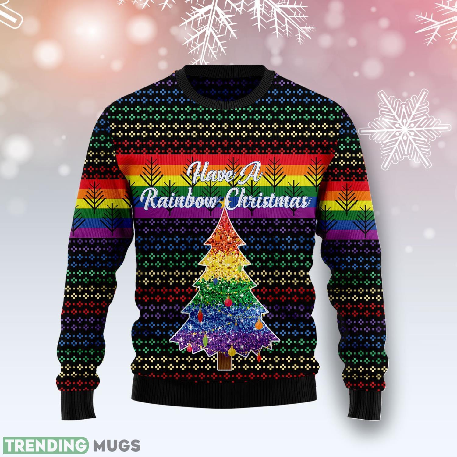 Featuring a vibrant and dazzling rainbow Christmas tree design, this sweater will make you the center of attention at any holiday gathering. The bold and colorful tree is adorned with twinkling lights and shimmering ornaments, capturing the essence of the holiday season in a unique and inclusive way.