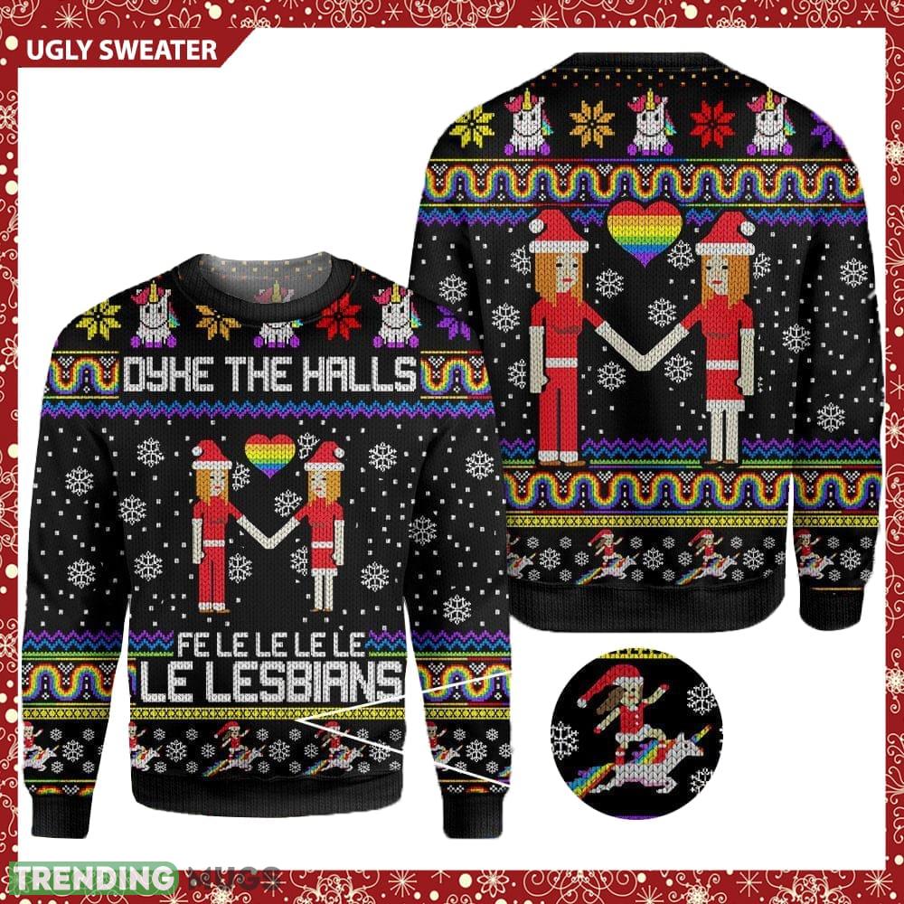 LGBTQ+ Dyke The Halls Fe Le Le Le Le Le Lesbians Ugly Christmas Sweater 3D Sweater