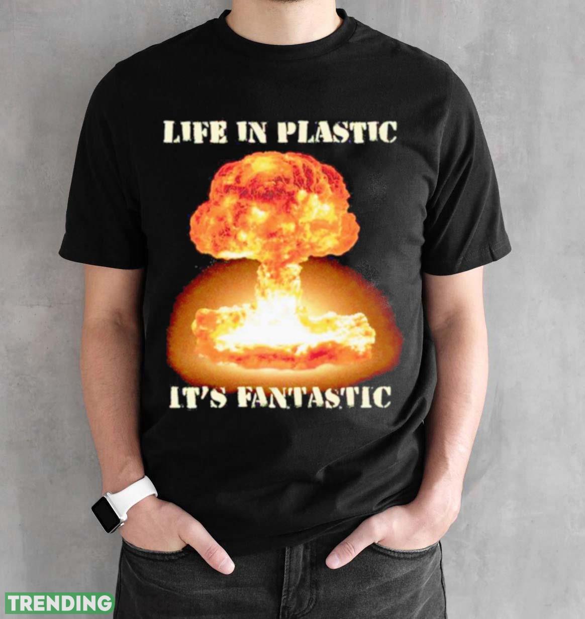 Feel the nostalgia and embrace the retro vibes with our Life in Plastic Oppenheimer Shirt. Inspired by a legendary era, this shirt is a must-have for those seeking a unique and eye-catching addition to their wardrobe.