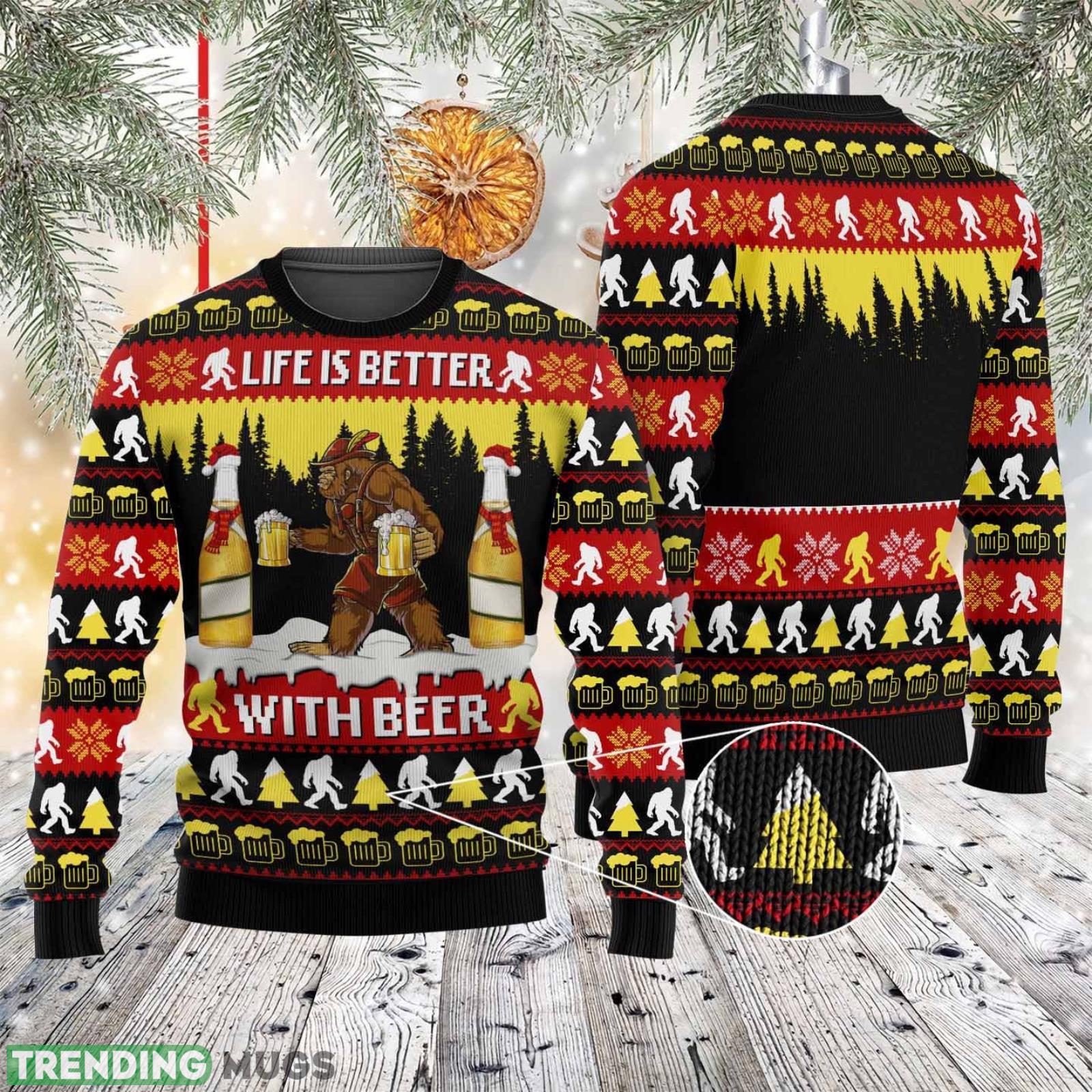 Life Is Better With Beer Bigfoot Gift X-mas Ugly Christmas Sweater Unisex 3D Sweater Christmas Gift Product Photo 1