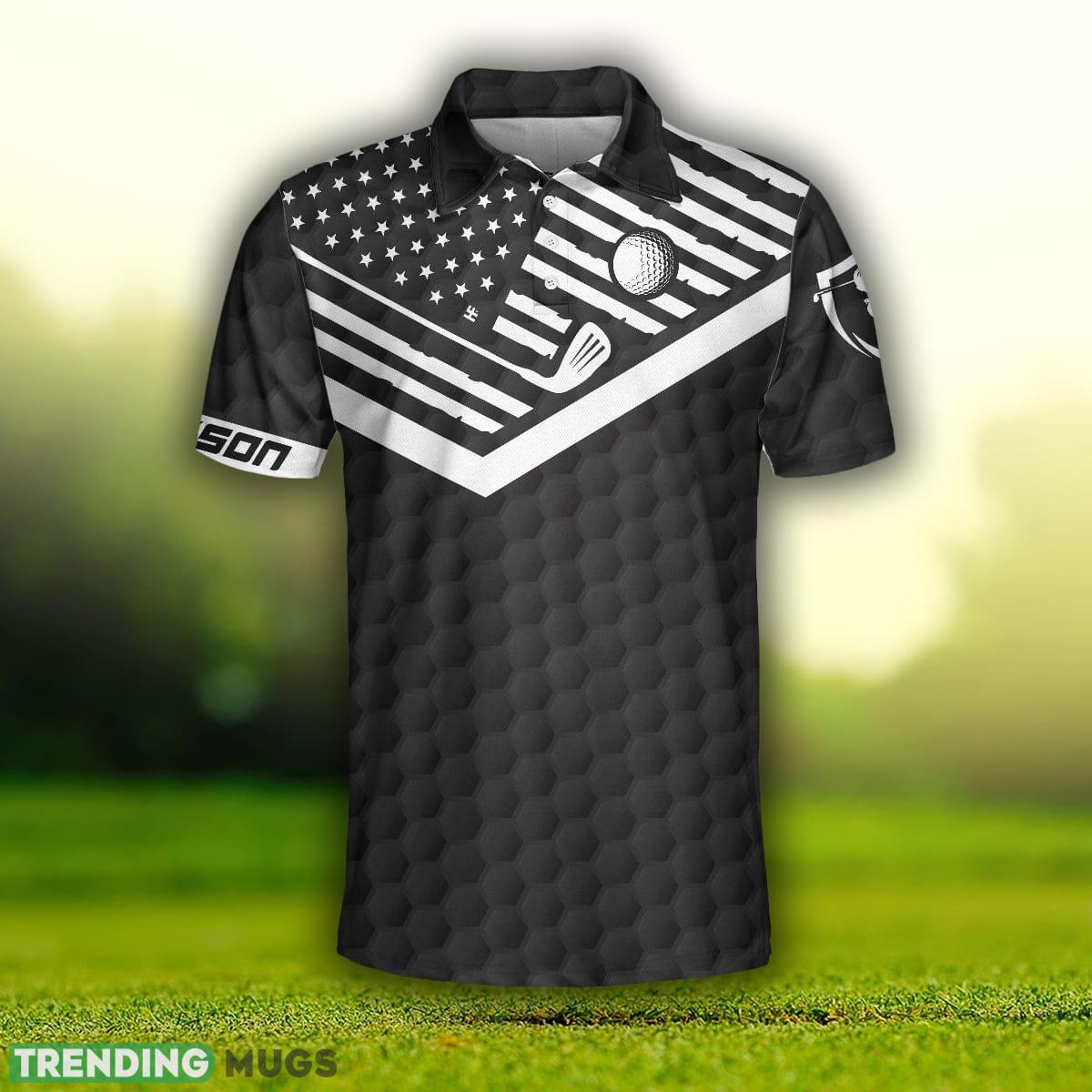 Featuring a sleek black design and a prominent American flag emblem, this golf shirt stands out from the crowd. The custom name option allows you to personalize your shirt, making it truly one-of-a-kind. Whether you choose to have your name, a special message, or a favorite quote embroidered on it, you can be sure that this polo shirt will make a statement wherever you go.