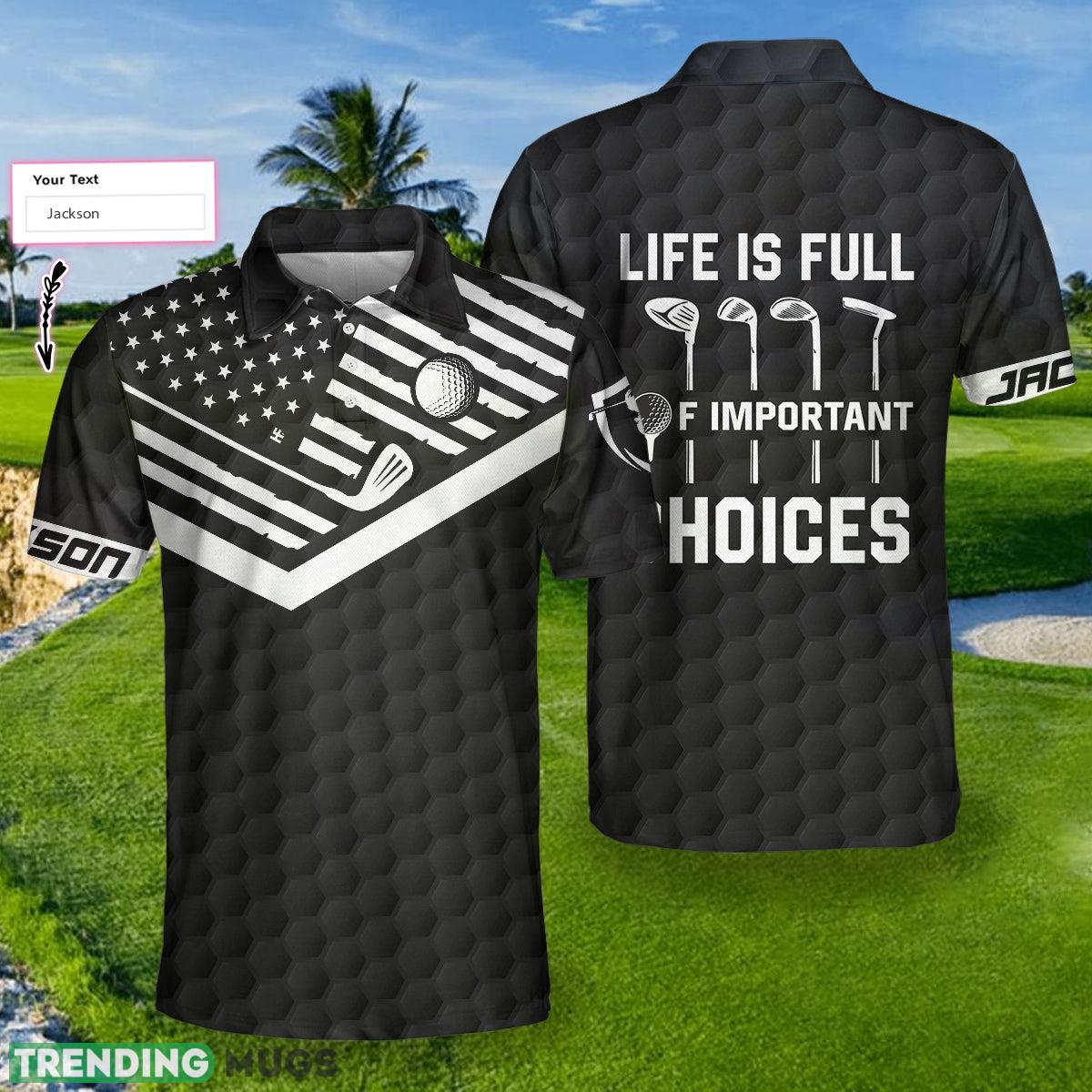 Life Is Full Of Important Choices, Black American Flag Golf Shirt Custom Name Polo Shirt Information: