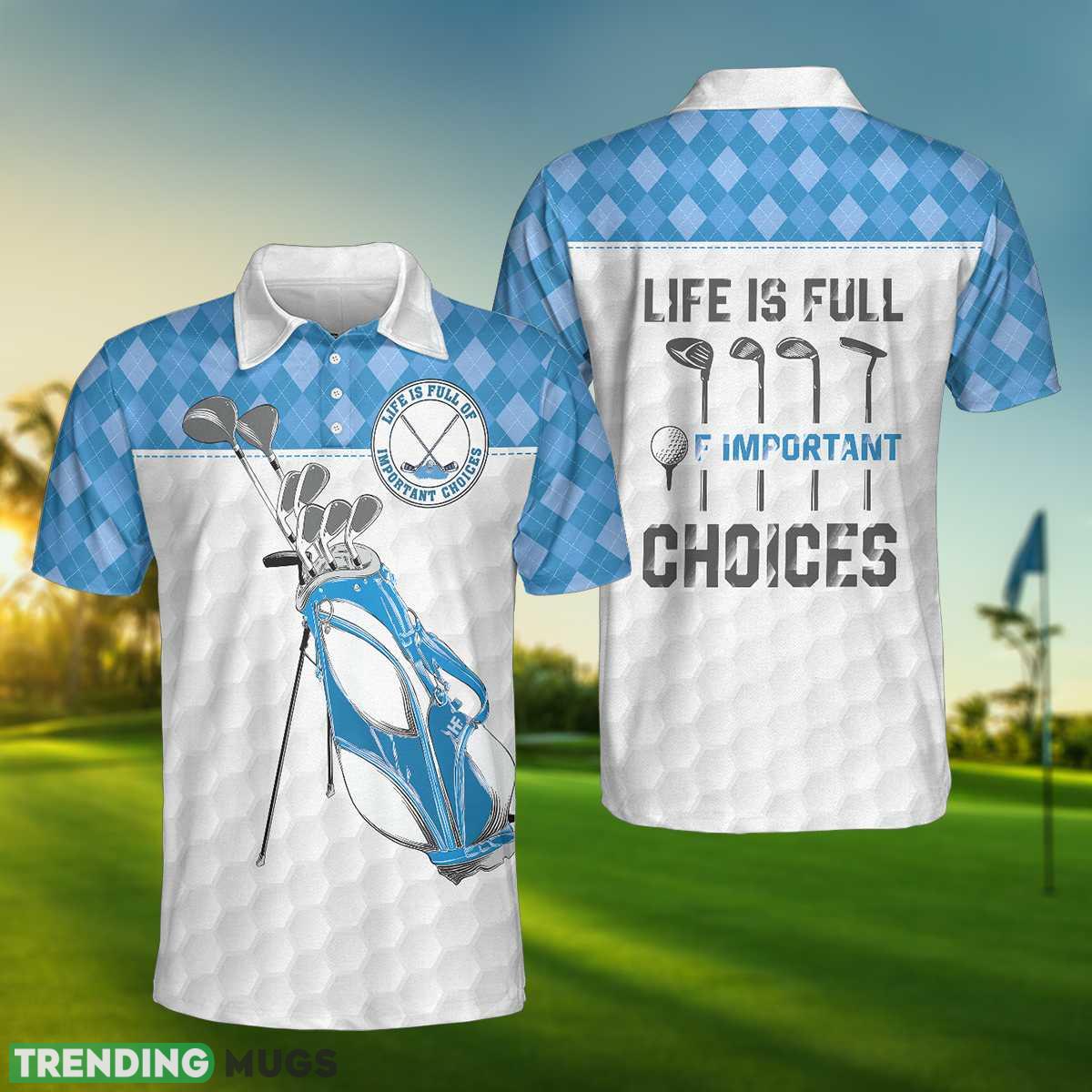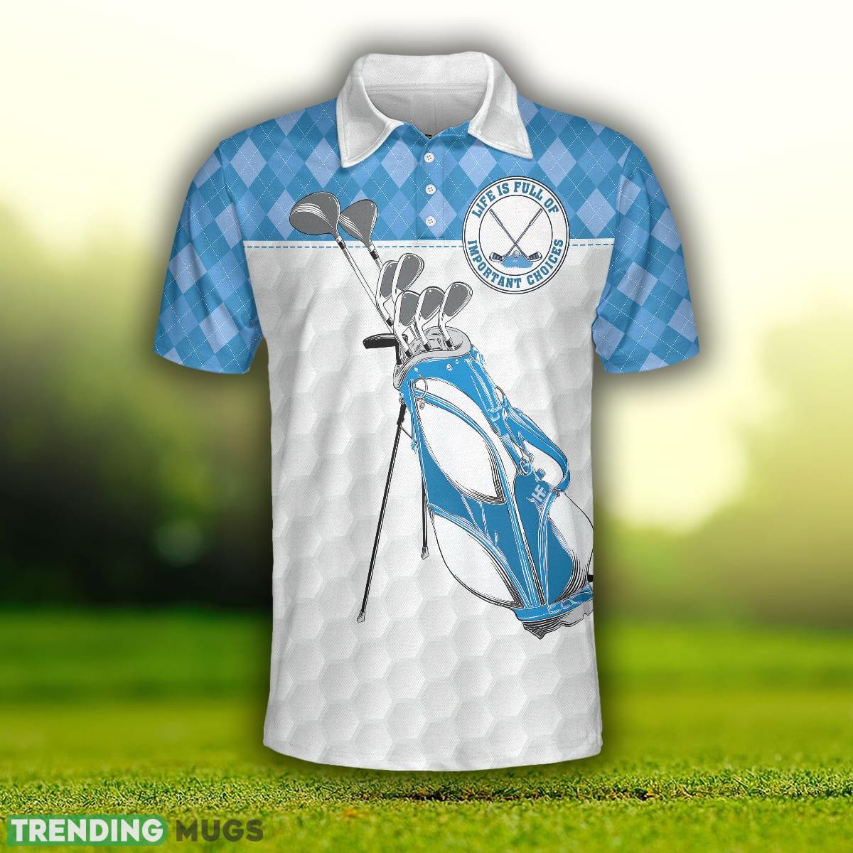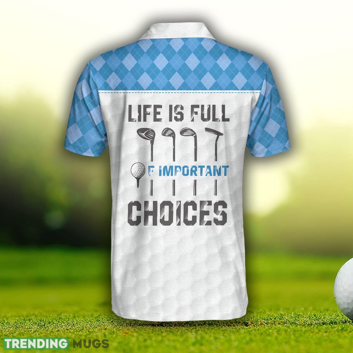The Life Is Full Of Important Choices Golf, White Golf Texture Blue Argyle Pattern, Best Golf Shirt Polo Shirt is more than just a piece of clothing – it’s a statement. Elevate your golfing ensemble with this exceptional polo shirt and experience the perfect blend of style, comfort, and functionality. Make the right choice and add this remarkable shirt to your golfing wardrobe today.