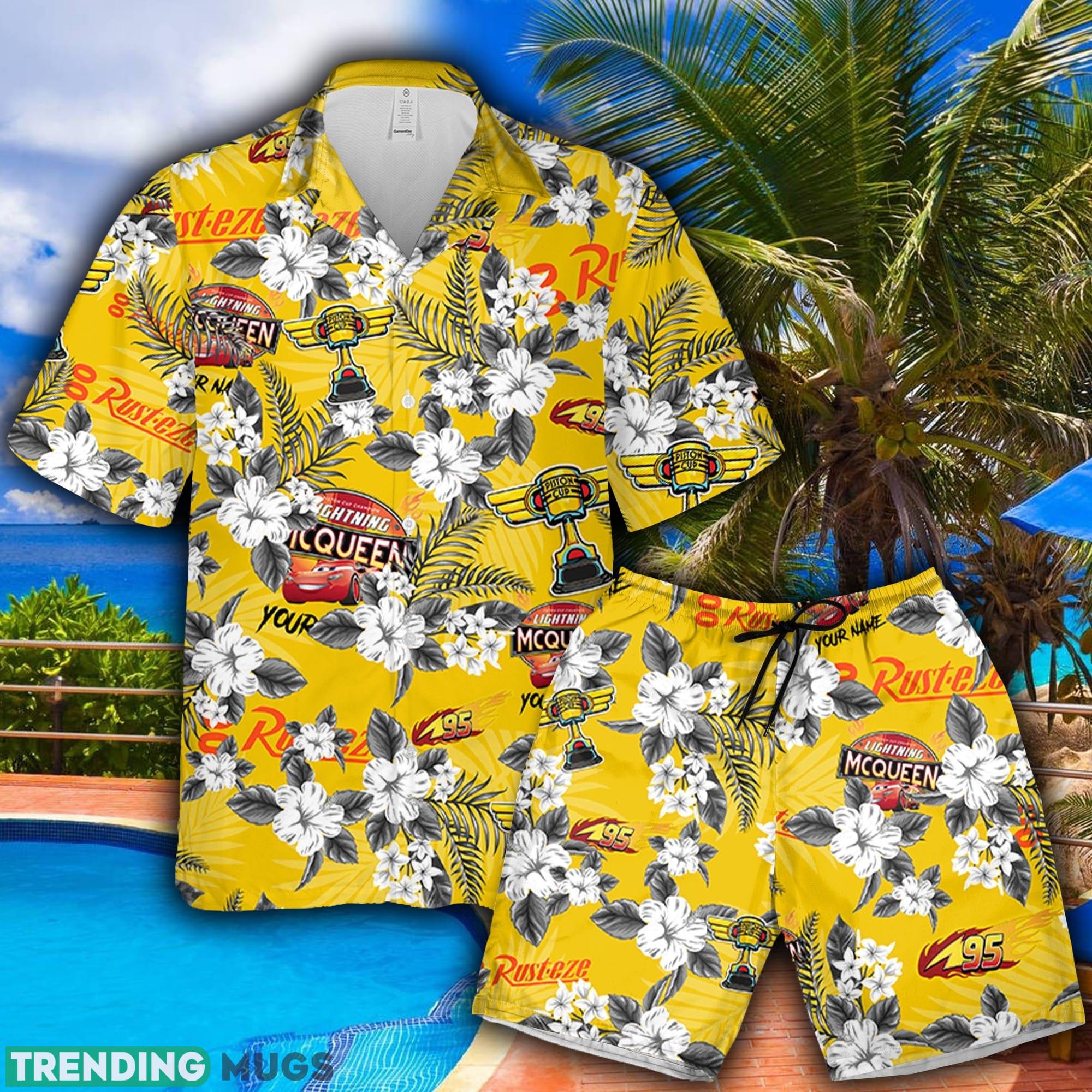 Lightning Mcqueen Racing champion yellow Hawaiian Shirt And Short Flowers Custom Name Summer Gift For Men And Women – Lightning Mcqueen Racing champion yellow Hawaiian Shirt Flowers Custom Name Summer Beach Gift For Men And Women