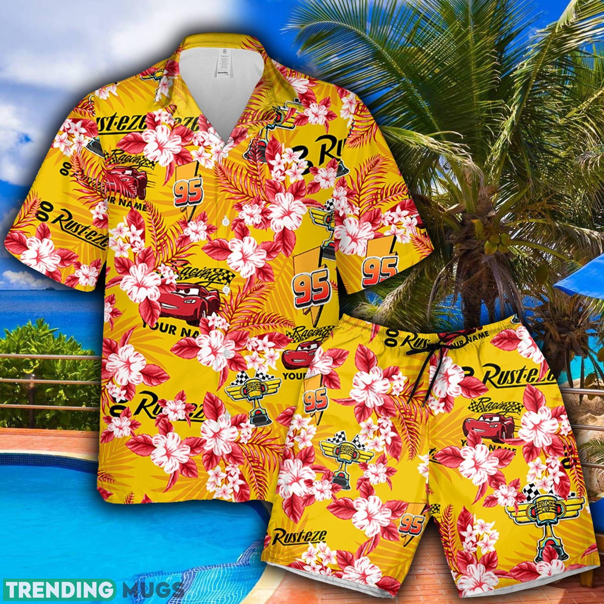 What sets this shirt apart is the option for customizing it with your name, making it a truly unique and personal summer gift. Whether you want to show off your own name or surprise a loved one with a thoughtful present, our Lightning McQueen Racing Red Hawaiian Shirt and Short Flowers is the perfect choice.