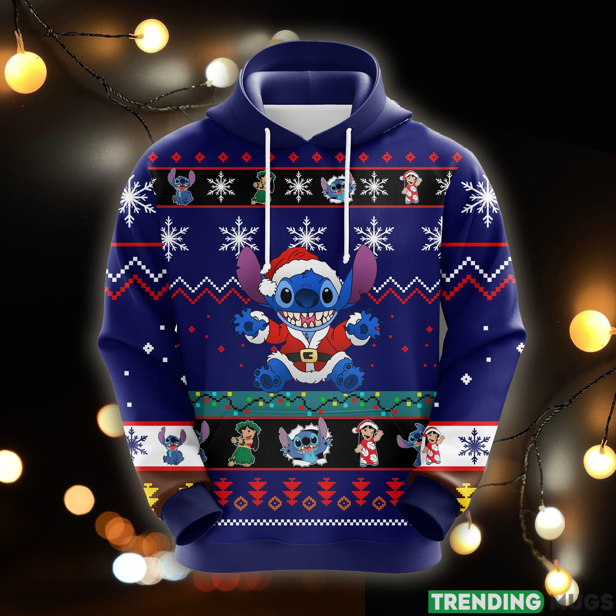 • Lilo & Stitch Christmas Cute Noel Mc Ugly 3D Hoodie All Over Print Blue 1 Gift For Men Women 3D Hoodies