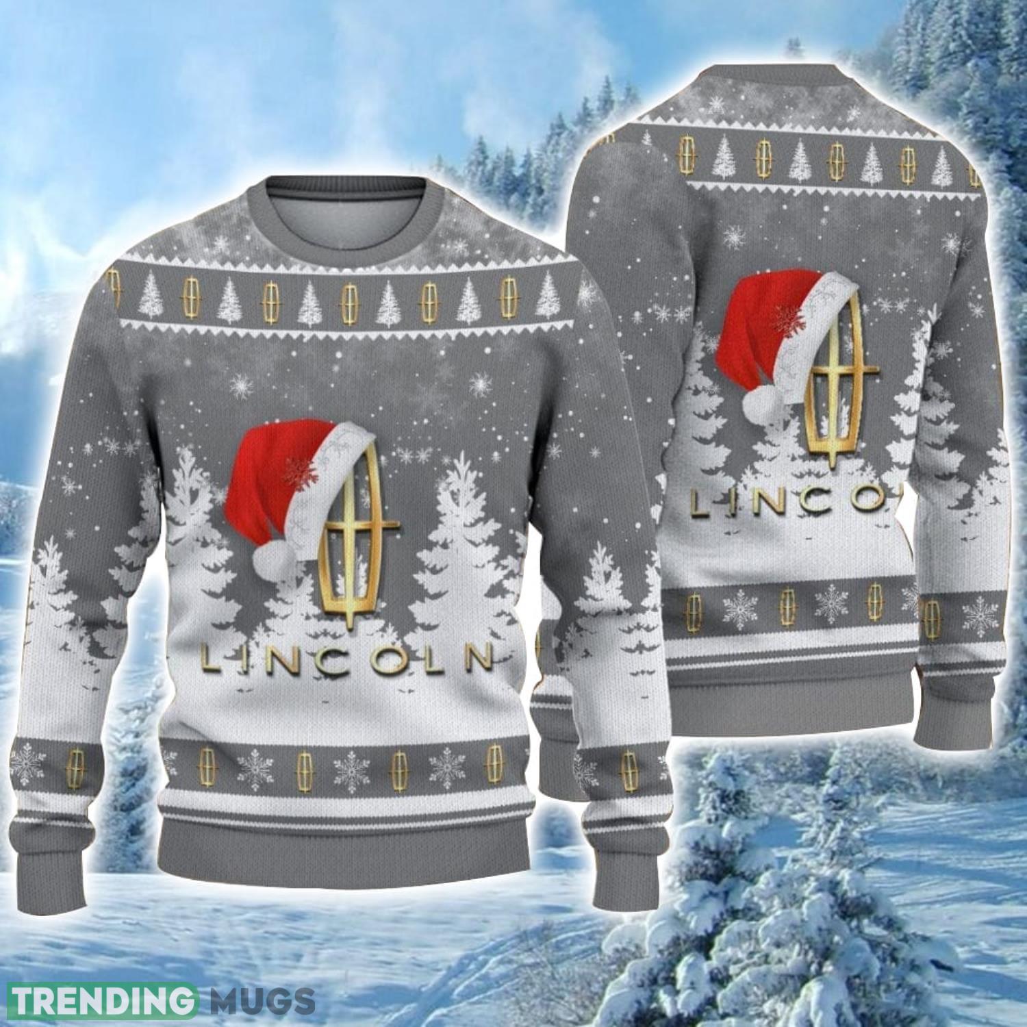 Lincoln Logo Wearing Santa Hat Christmas Gift Ugly Christmas Sweater For Car Lover 3D Sweater Product Photo 1