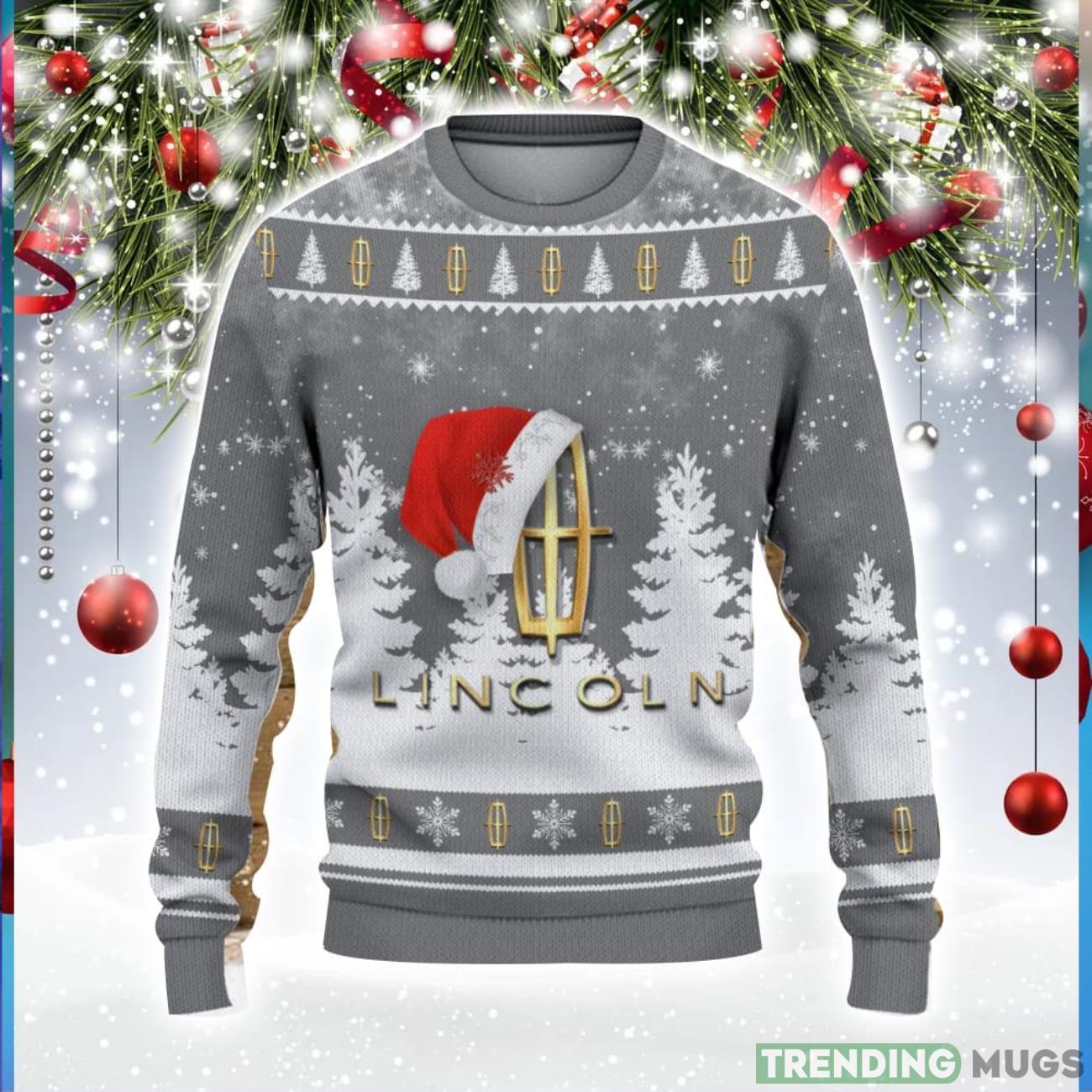 Lincoln Logo Wearing Santa Hat Christmas Gift Ugly Christmas Sweater For Men And Women Gift Informations: