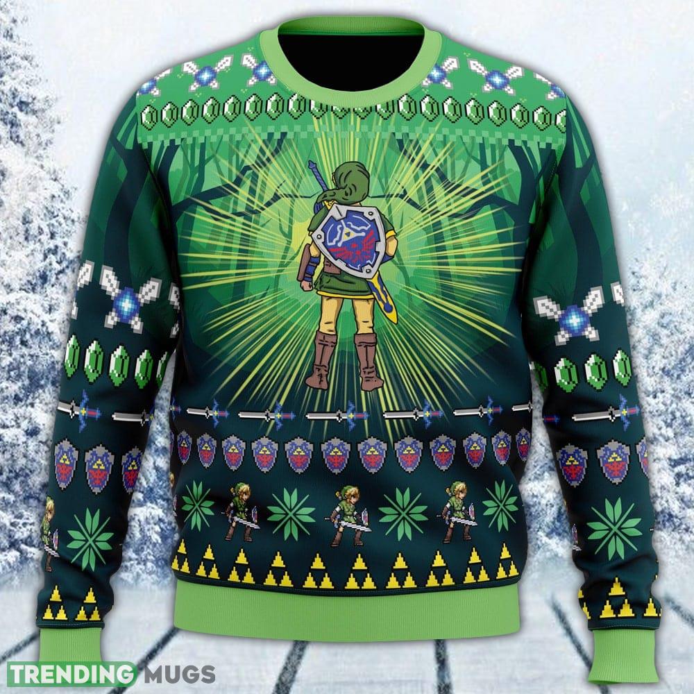 Get ready to level up your holiday fashion game with the Link Legend of Zelda Ugly Sweater! This cozy and comfortable sweater is the perfect gift for any Zelda fan, whether you’re shopping for a man or woman. The vibrant green color and iconic Link design are sure to make a statement at any holiday party or gathering. Made with high-quality materials, this sweater is both durable and stylish, so you can wear it for many holiday seasons to come. Don’t settle for a boring sweater this Christmas – upgrade your wardrobe with the Link Legend of Zelda Ugly Sweater!