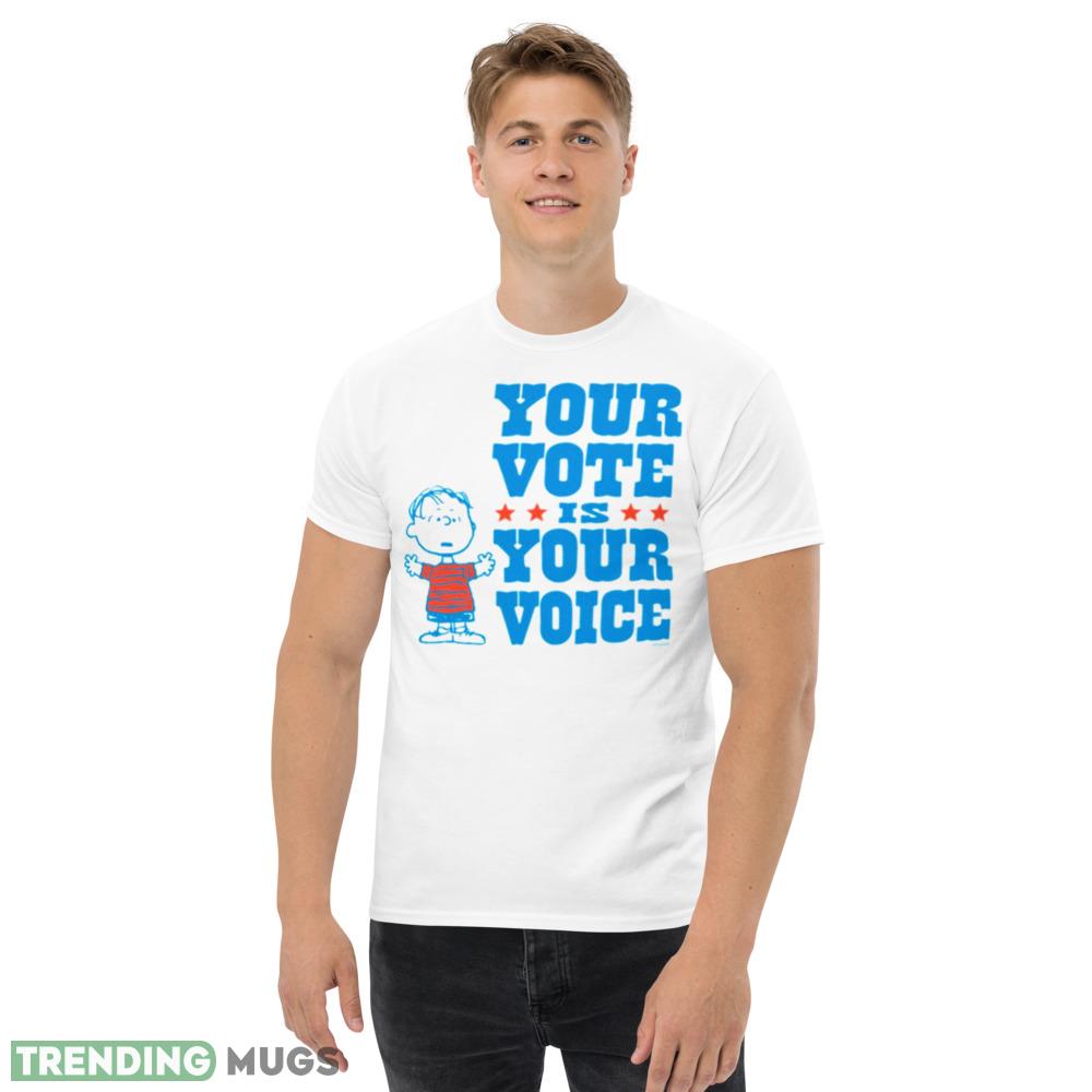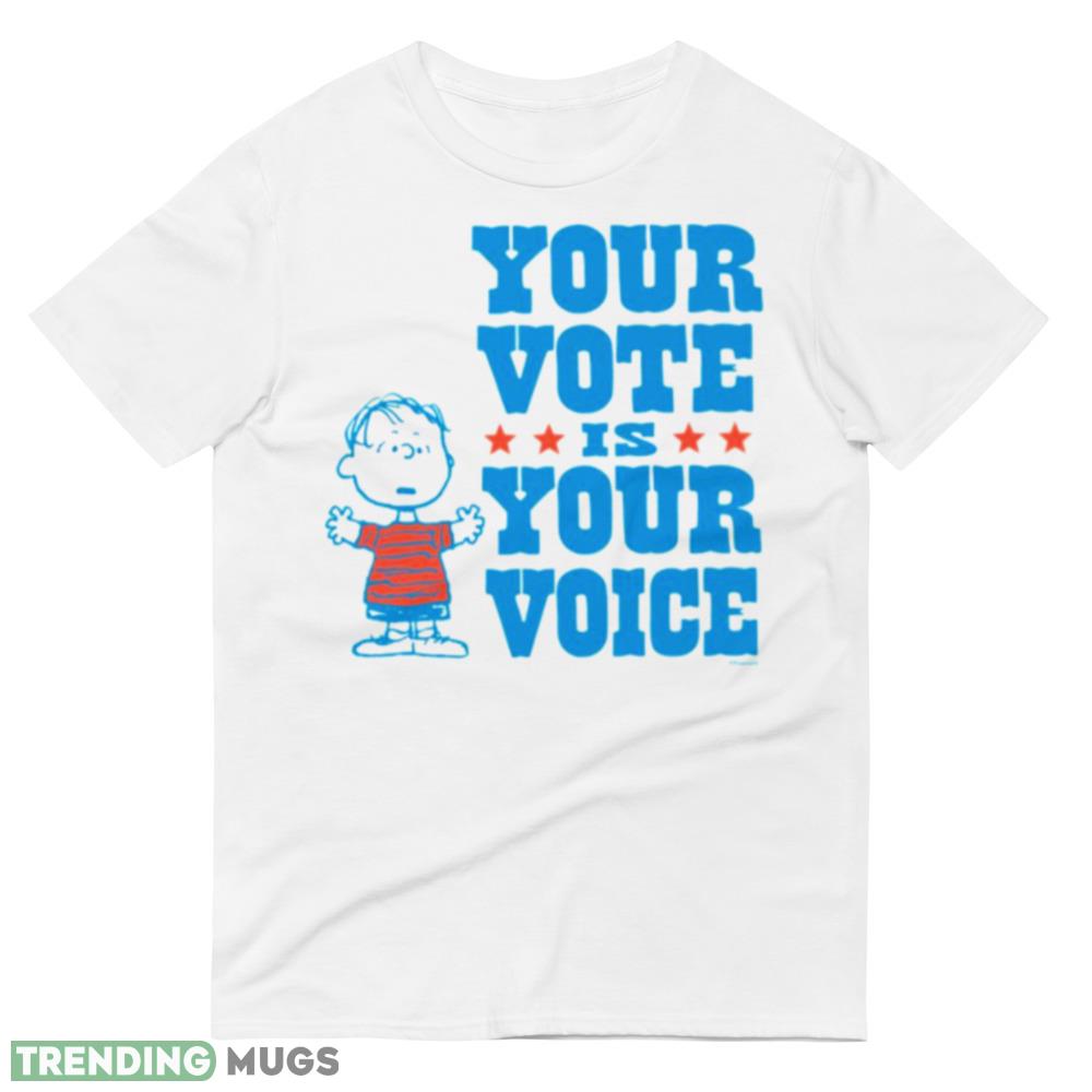 Looking for an eye-catching and comfortable t-shirt that expresses your love for the Peanuts gang? Look no further than our Linus Your Vote Is Your Choice Peanuts White T-Shirt!