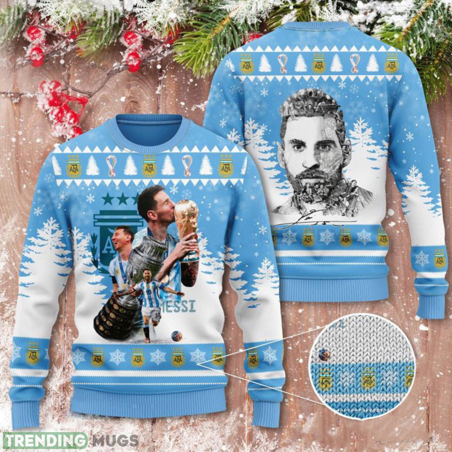 Get ready to celebrate the holiday season in style with our Lionel Messi Argentina Football Wins FIFA World Cup Qatar 2022 Ugly Christmas Sweater! This festive sweater is the perfect Christmas gift for all the passionate sport fans out there.