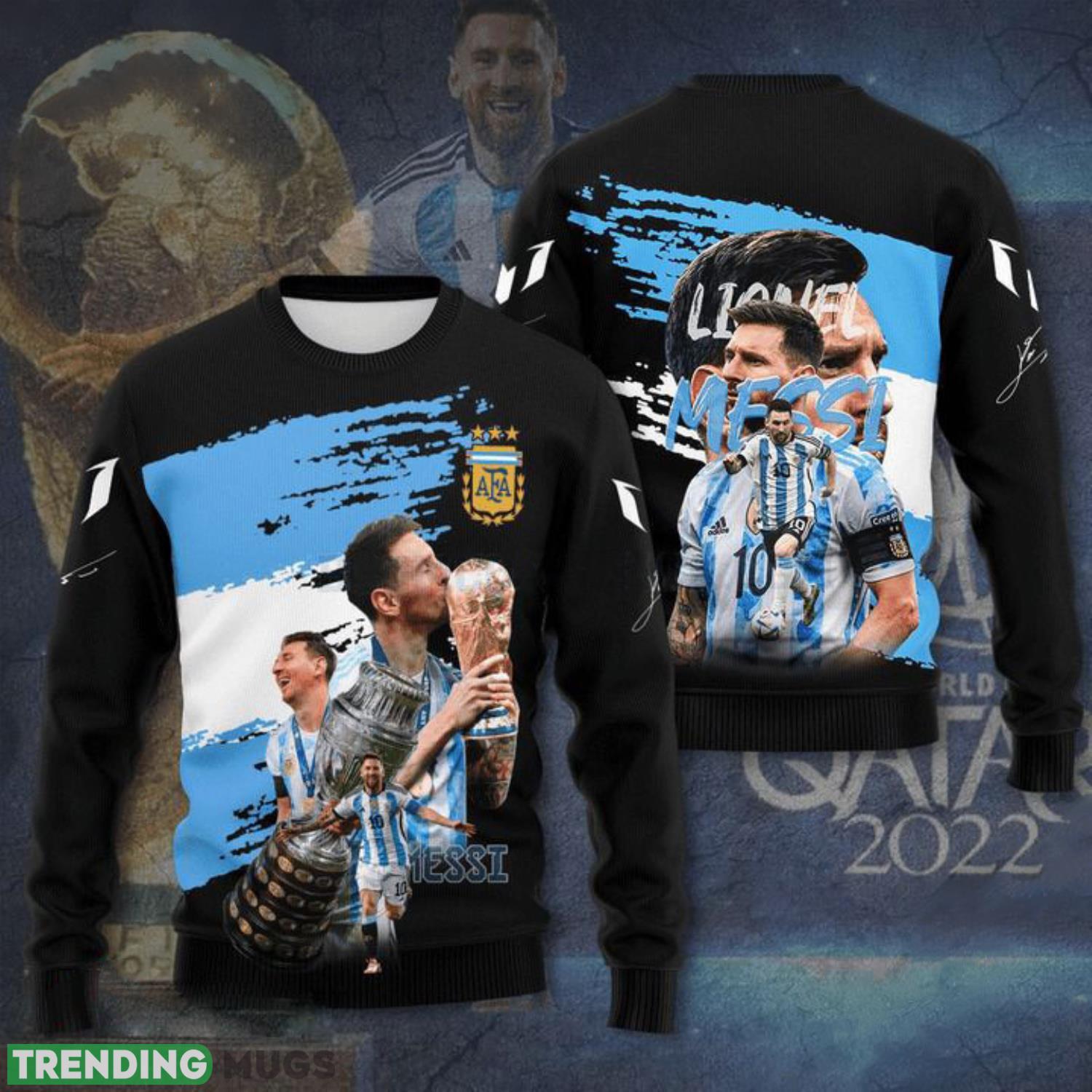 Not only does this sweater celebrate Messi’s remarkable achievements, but it also adds a touch of Christmas charm. The combination of the FIFA World Cup theme and the festive holiday elements makes it a unique and standout piece for any holiday gathering or Christmas party.