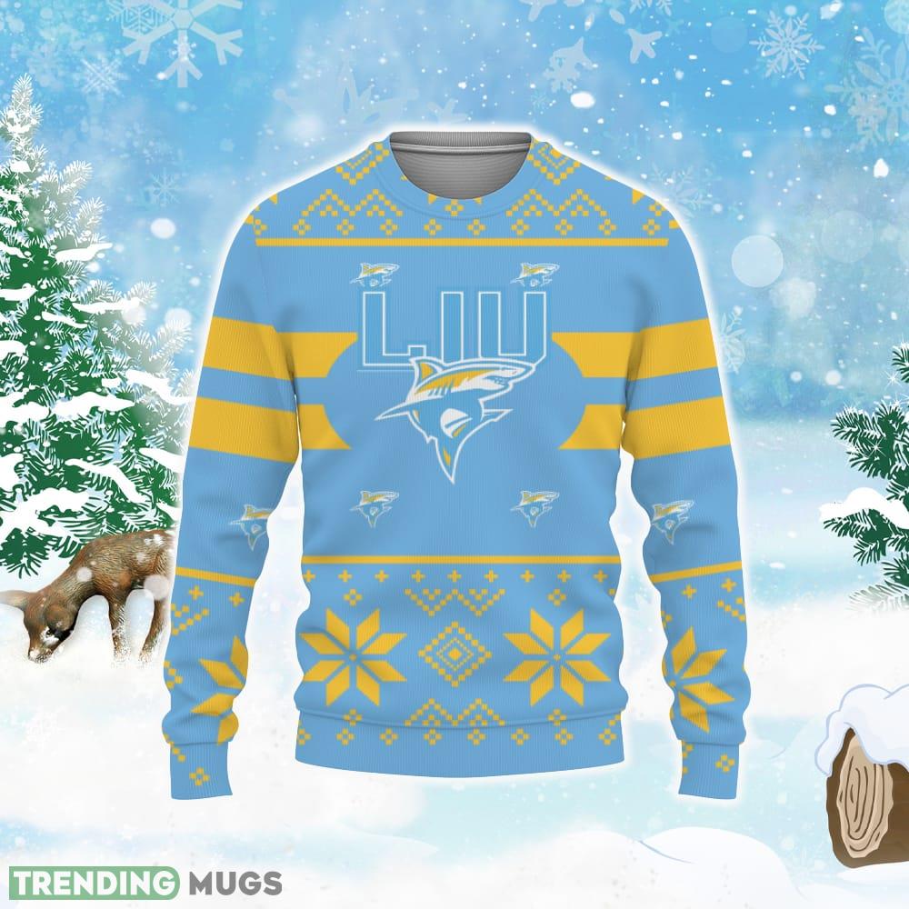 LIU Sharks Custom New Uniforms For Fan Gear Ugly Xmas AOP Sweater Informations: