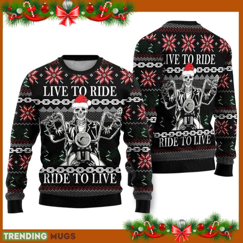 Live To Ride Motorbike Skeleton Ugly Christmas Sweater Funny Gift For Men And Women Family Holidays Informations:
