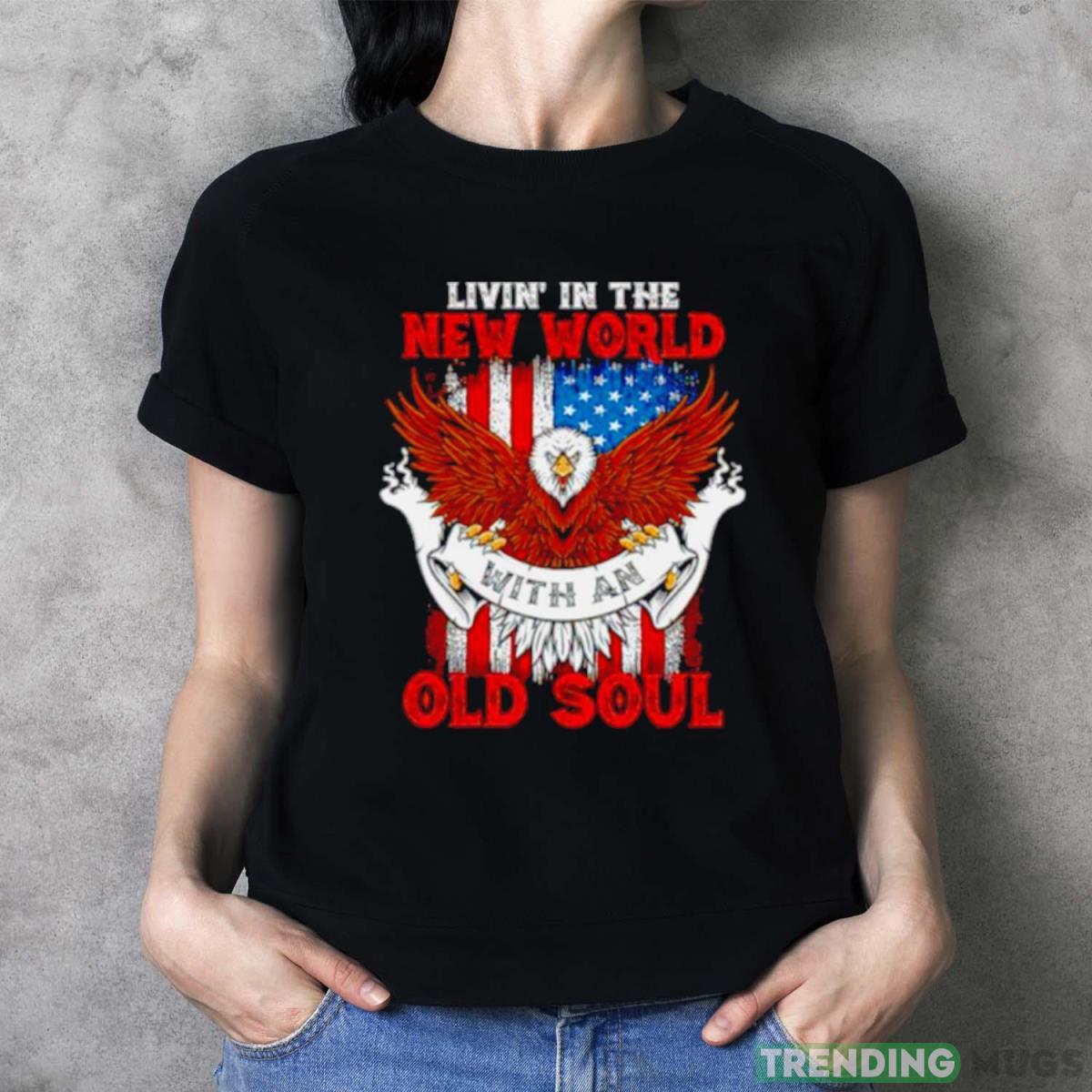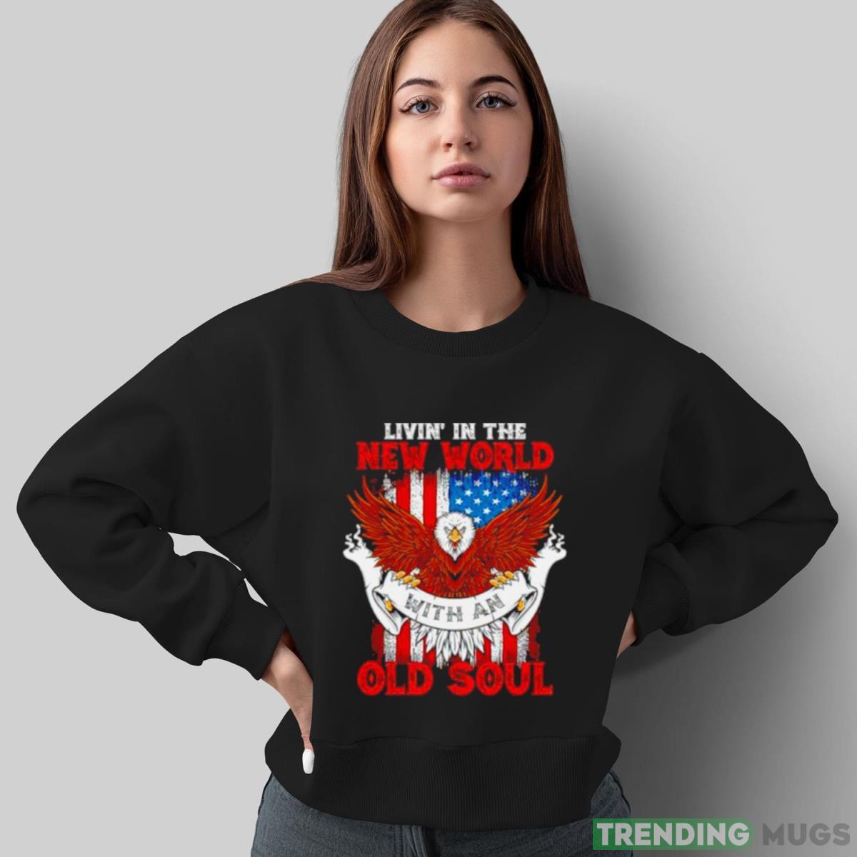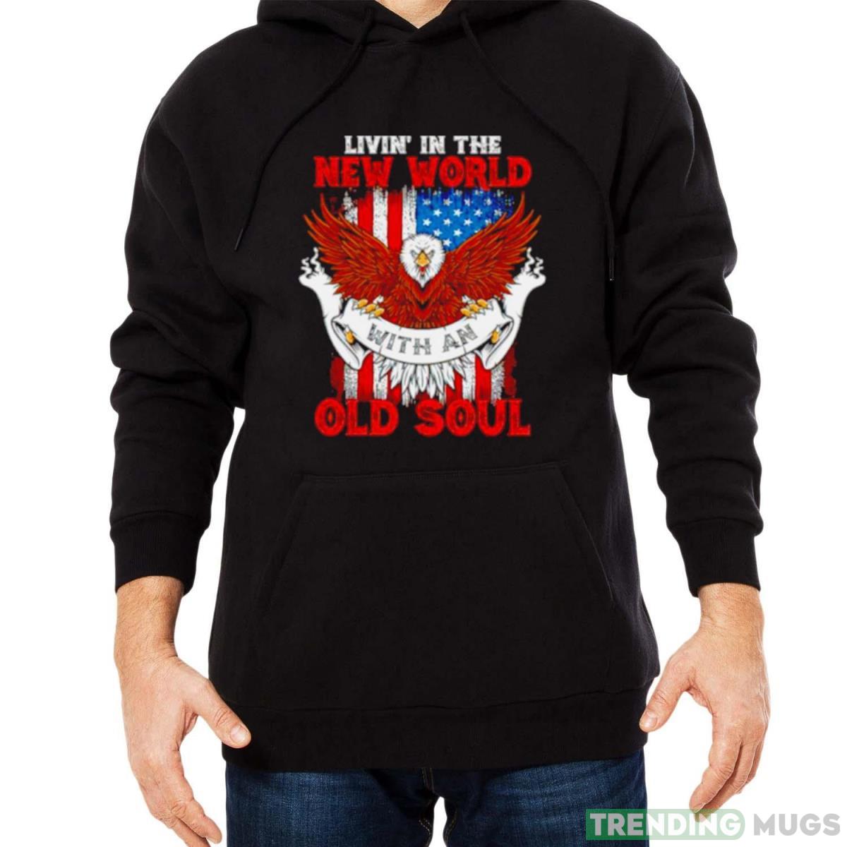 Living in the new world with an old soul Eagle American Flag shirt Details