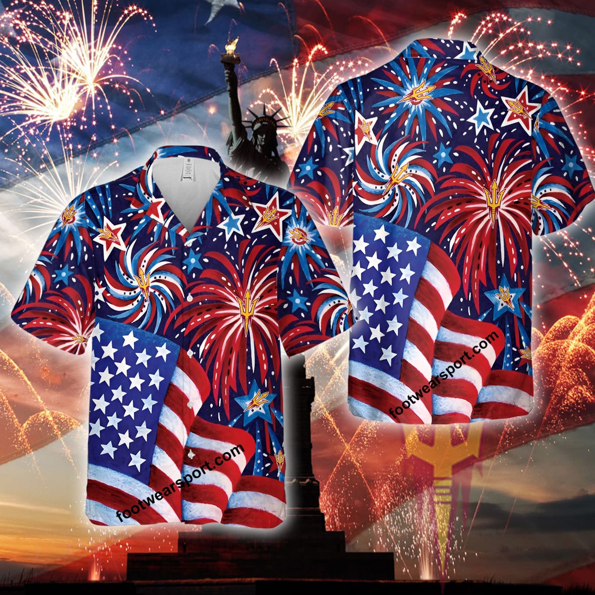 Some of the Logo NCAA Arizona State Sun Devils US Flag Pattern Firework Memory copy Summer Hawaiian Shirt All Over Print Gift Independence Day photos