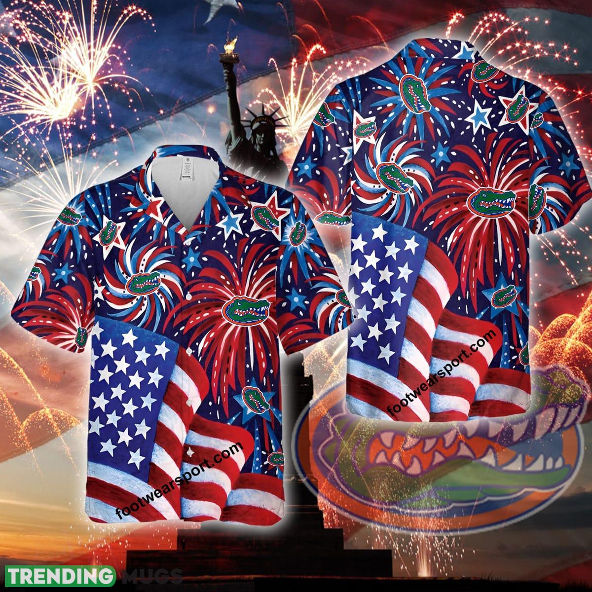 Logo NCAA Florida Gators US Flag Pattern Firework Memory copy Fans AOP Hawaiian Shirt Gift Independence Day – Logo NCAA Florida Gators US Flag Pattern Firework Memory Fans AOP Hawaiian Shirt Gift Independence Day