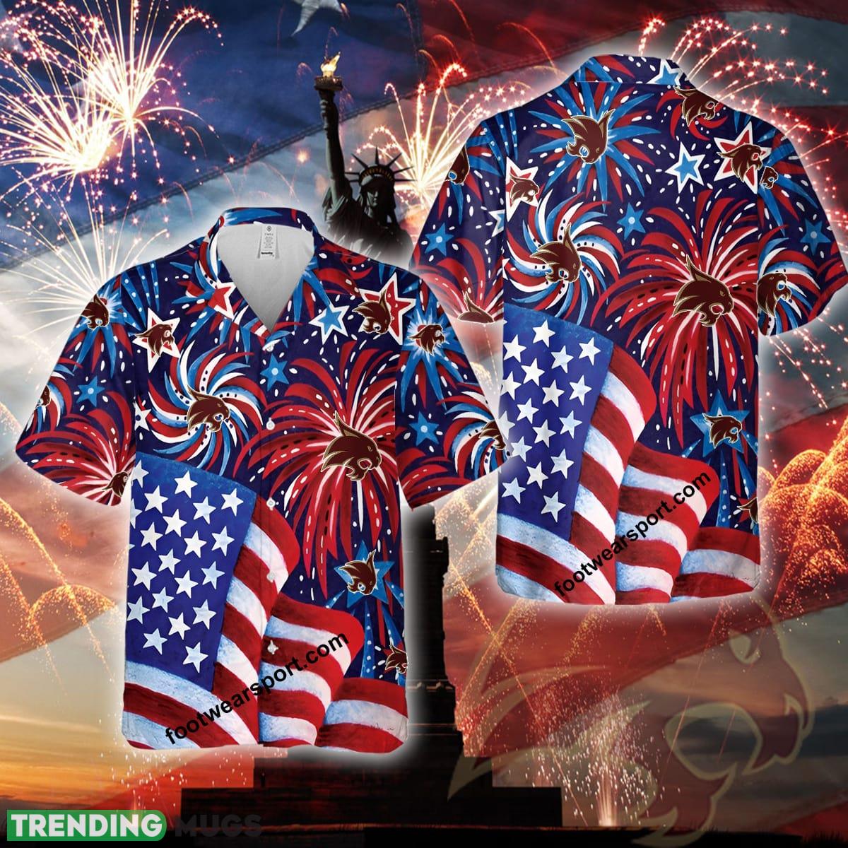 Logo NCAA Texas State Bobcats US Flag Pattern Firework Memory Fans Aloha Hawaiian Shirt Gift Independence Day Details: