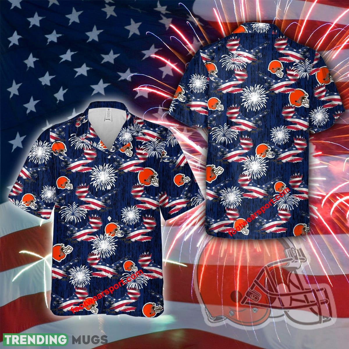 Celebrate Independence Day in style with our Logo NFL Cleveland Browns Memory Eagle Pattern Aloha Hawaiian Shirt! This unique and eye-catching shirt is perfect for showing off your team spirit while also embracing the laid-back vibes of a Hawaiian vacation. Whether you’re grilling in the backyard or watching fireworks light up the sky, this shirt is sure to make a statement. Treat yourself or surprise a loved one with the perfect gift for any Cleveland Browns fan. Add a touch of team pride to your wardrobe and stand out from the crowd this Fourth of July!