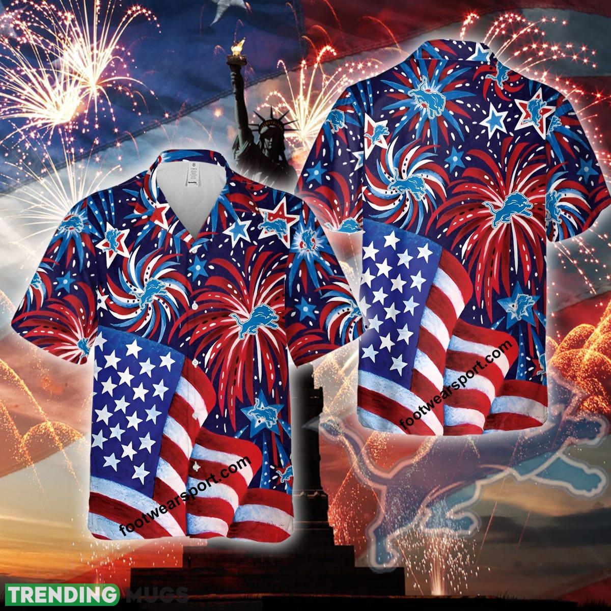 Logo NFL Detroit Lions US Flag Pattern Firework Memory Fans Hawaiian Shirt AOP Gift Independence Day – Logo NFL Detroit Lions US Flag Pattern Firework Memory Fans Hawaiian Shirt AOP Gift Independence Day