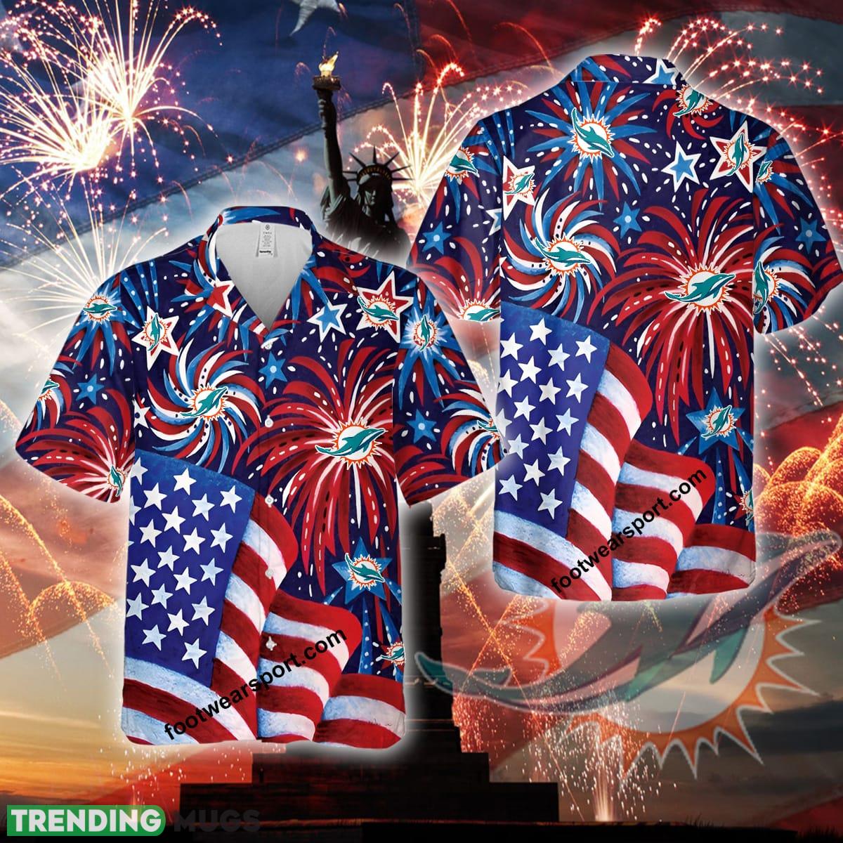 Logo NFL Miami Dolphins US Flag Pattern Firework Memory Beach Hawaiian Shirt Gift Independence Day – Logo NFL Miami Dolphins US Flag Pattern Firework Memory Beach Hawaiian Shirt Gift Independence Day
