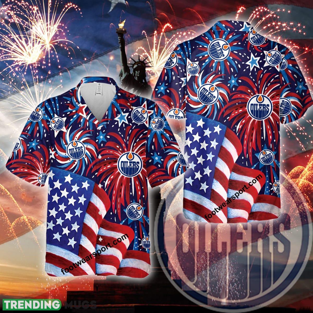 Logo NHL Edmonton Oilers US Flag Pattern Firework Memory Summer AOP Hawaiian Shirt Gift Independence Day – Logo NHL Edmonton Oilers US Flag Pattern Firework Memory Summer AOP Hawaiian Shirt Gift Independence Day