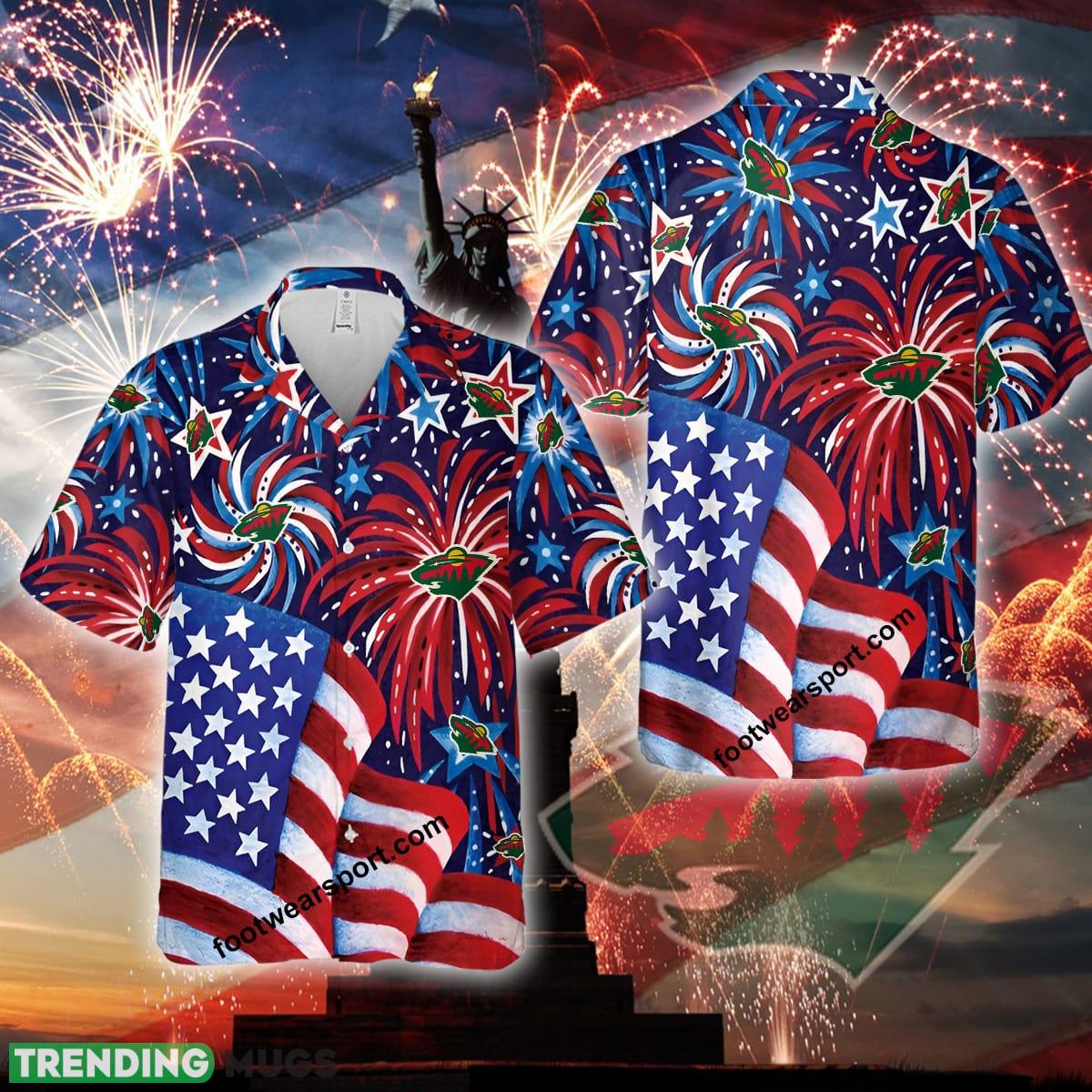 Logo NHL Minnesota Wild US Flag Pattern Firework Memory Hawaiian Shirt Gift Independence Day Details: