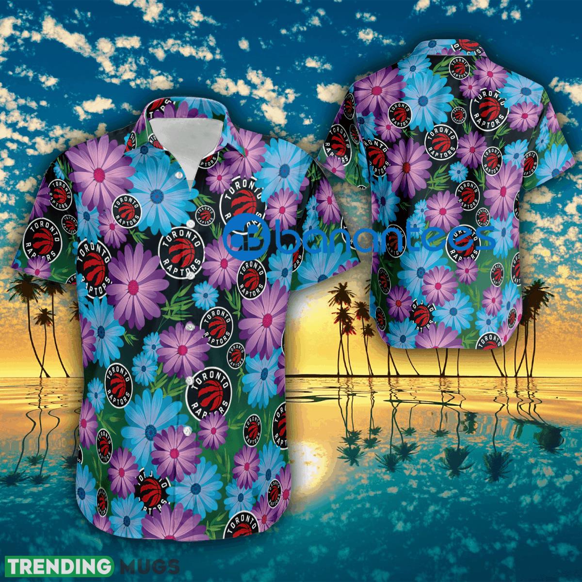 Featuring the iconic Toronto Raptors logo, this Hawaiian shirt combines basketball fandom with a tropical twist. The floral pattern adds a fun and trendy touch, making it the perfect choice for any casual occasion or beach getaway.