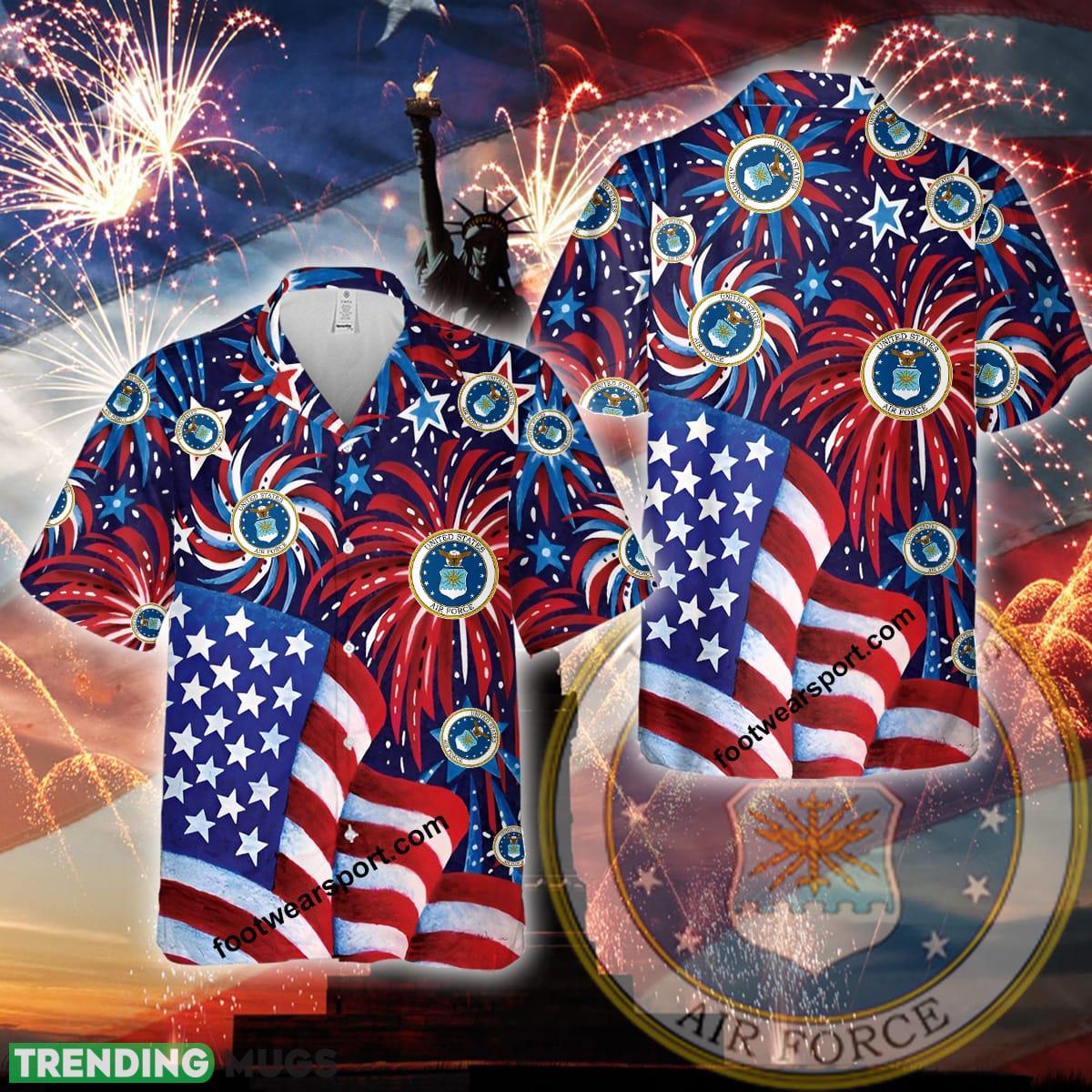 Logo US Air Force US Flag Pattern Firework Memory Fans 3D Hawaiian Shirt Gift Independence Day – Logo US Air Force US Flag Pattern Firework Memory Fans 3D Hawaiian Shirt Gift Independence Day