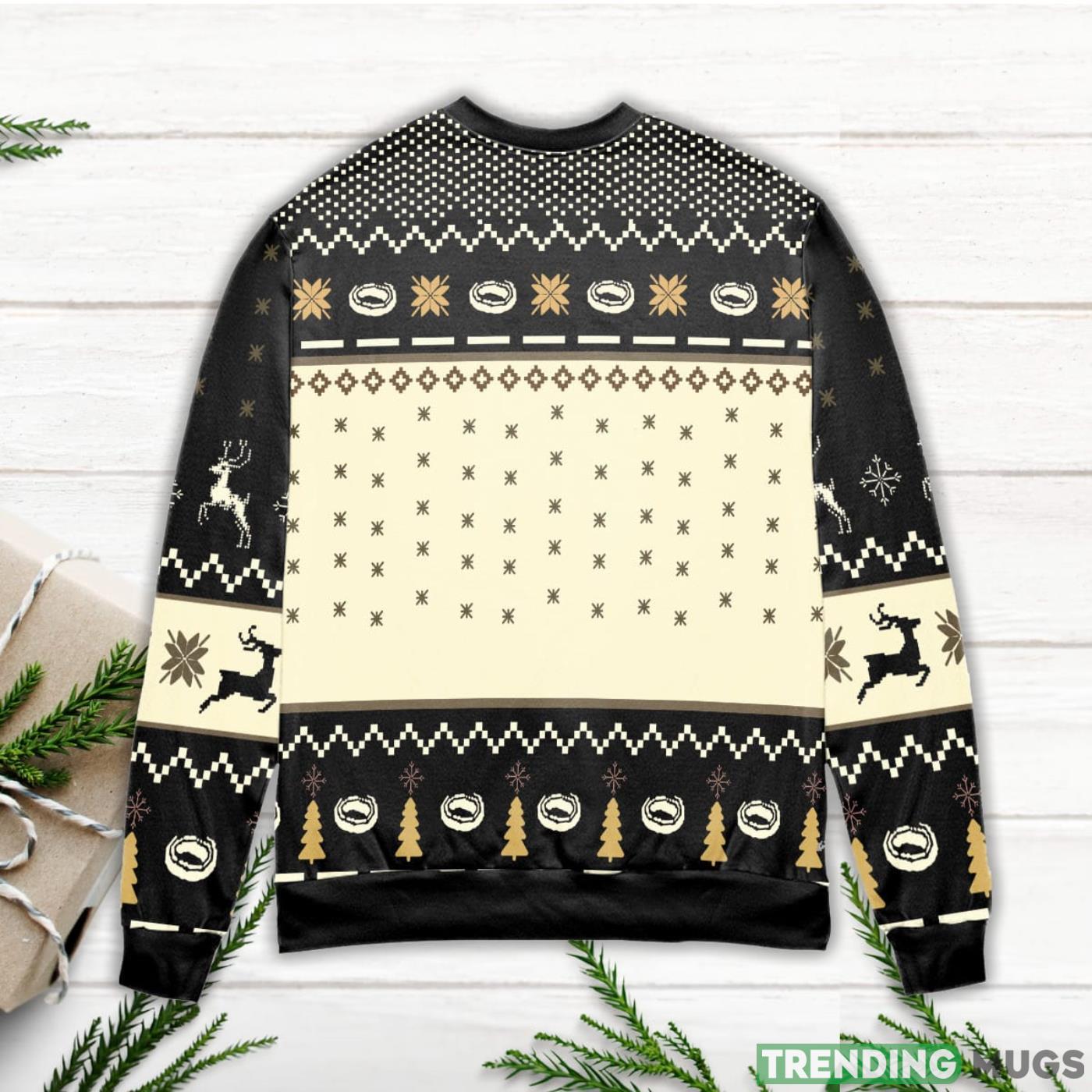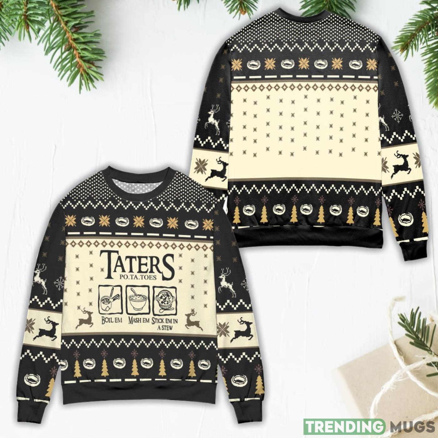 Lord of The Rings Taters Potatoes Recipe Pine Tree & Reindeer Pattern Black Ugly Christmas Sweater Informations: