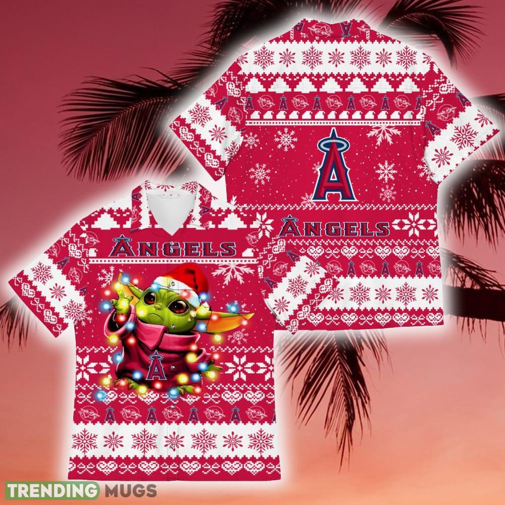 Designed with the Christmas holidays in mind, this shirt makes for an ideal gift for any die-hard fan. Its vibrant Hawaiian-inspired print features adorable Baby Yoda, effortlessly merging the worlds of baseball and intergalactic adventures. Whether you’re heading to a holiday party or cheering on the Angels at the ballpark, this shirt is sure to make a statement.