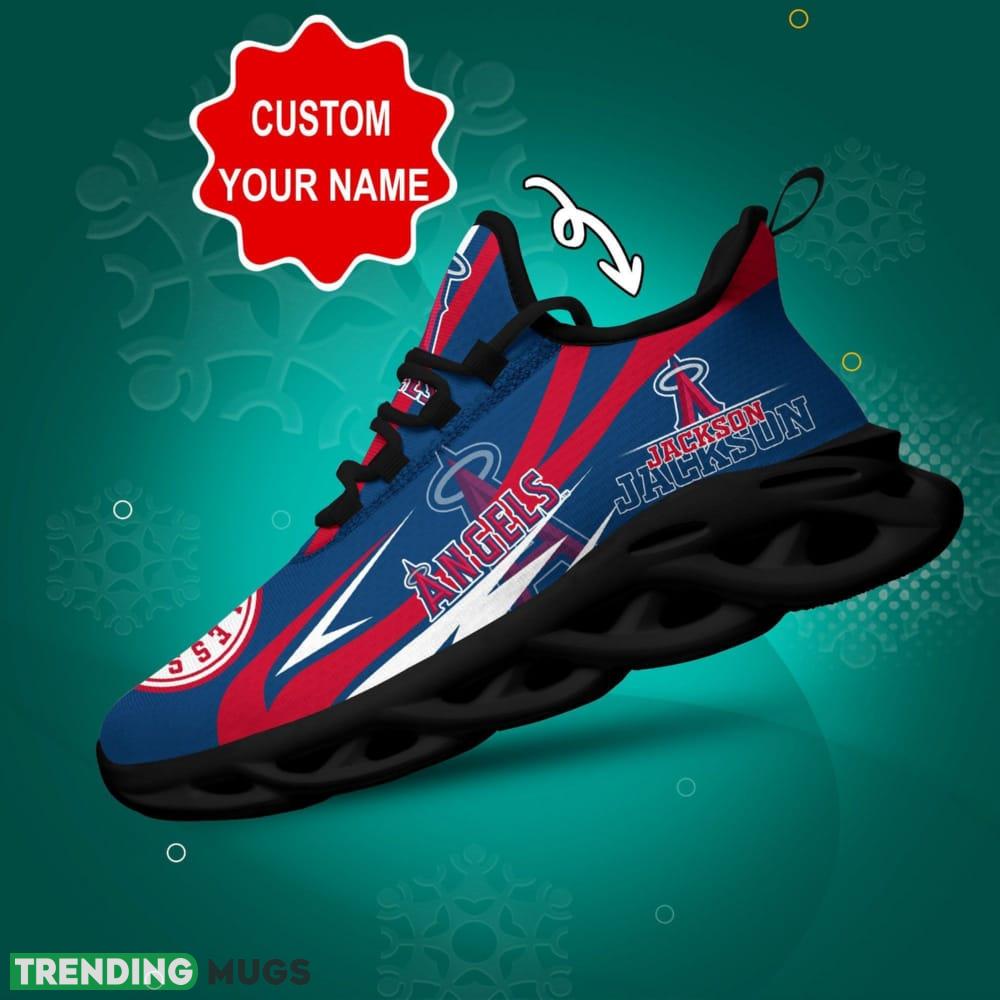 Don’t settle for ordinary sneakers – elevate your footwear collection with the Los Angeles Angels Logo Custom Name 3D Max Soul Sneaker Shoes. Order now and step into a world where style and team spirit collide.
