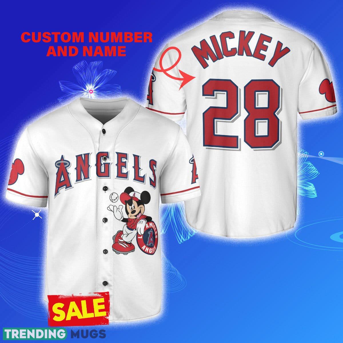 Los Angeles Angels Mickey Mouse x Los Angeles Angels Custom Number And Name White Jersey Baseball Shirt Football Jersey