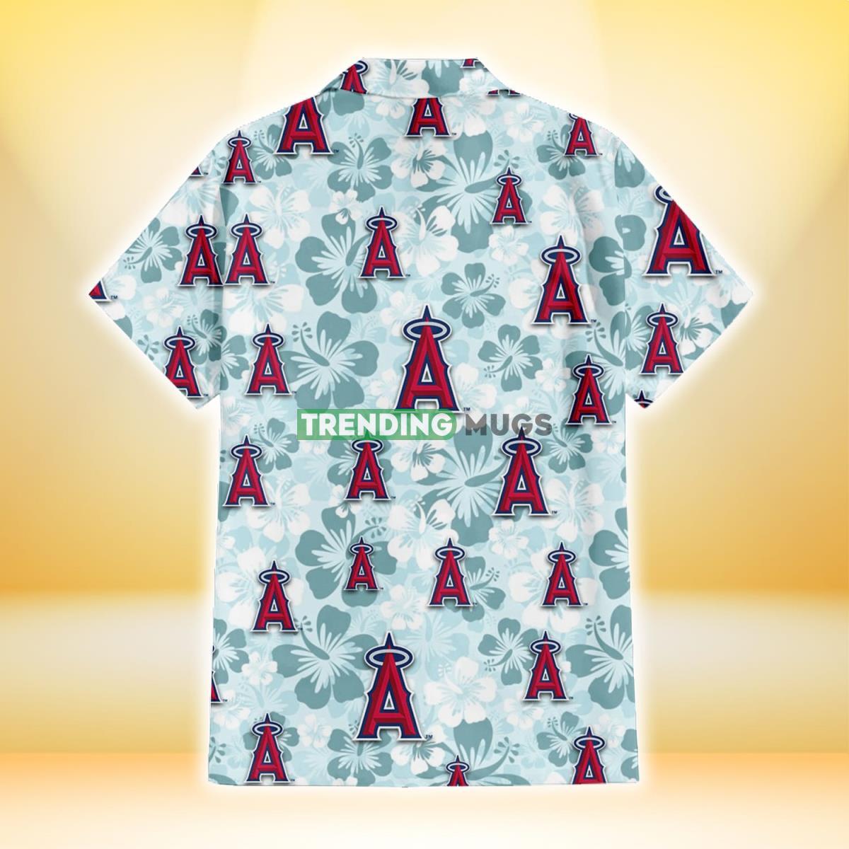 Los Angeles Angels Pale Turquoise Hibiscus Light Cyan Background 3D Hawaiian Shirt Details: