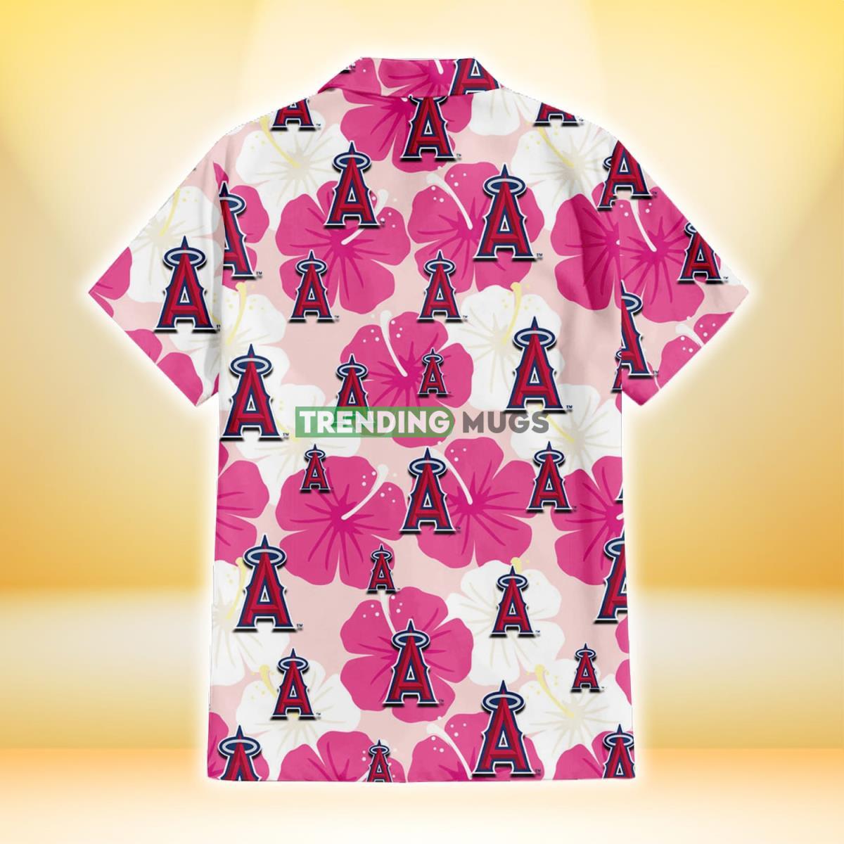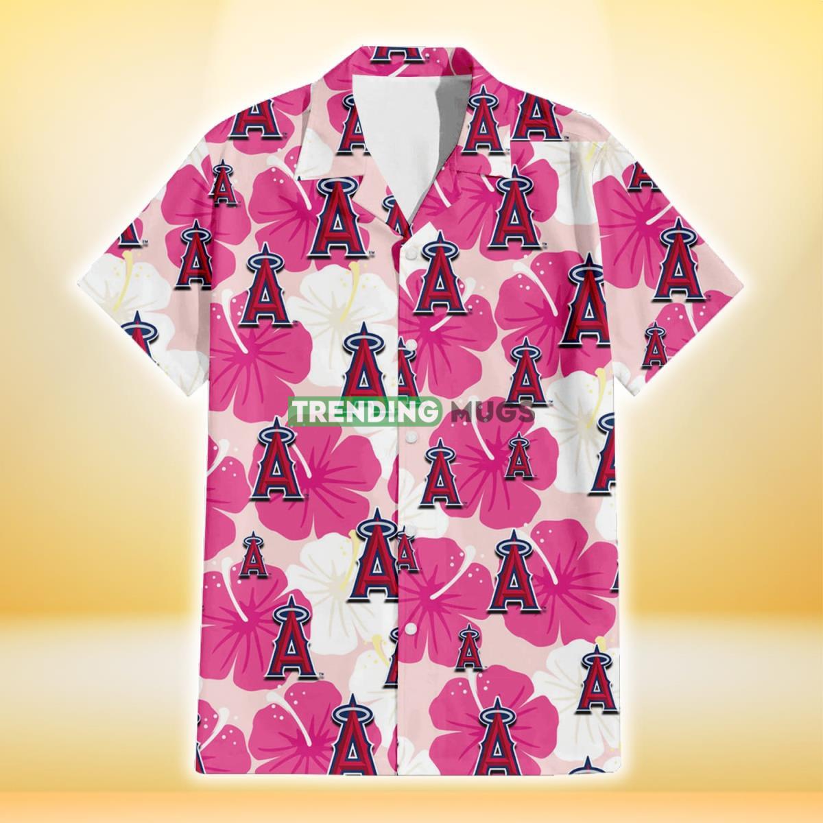 Some of the Los Angeles Angels Pink White Hibiscus Misty Rose Background 3D Hawaiian Shirt photos