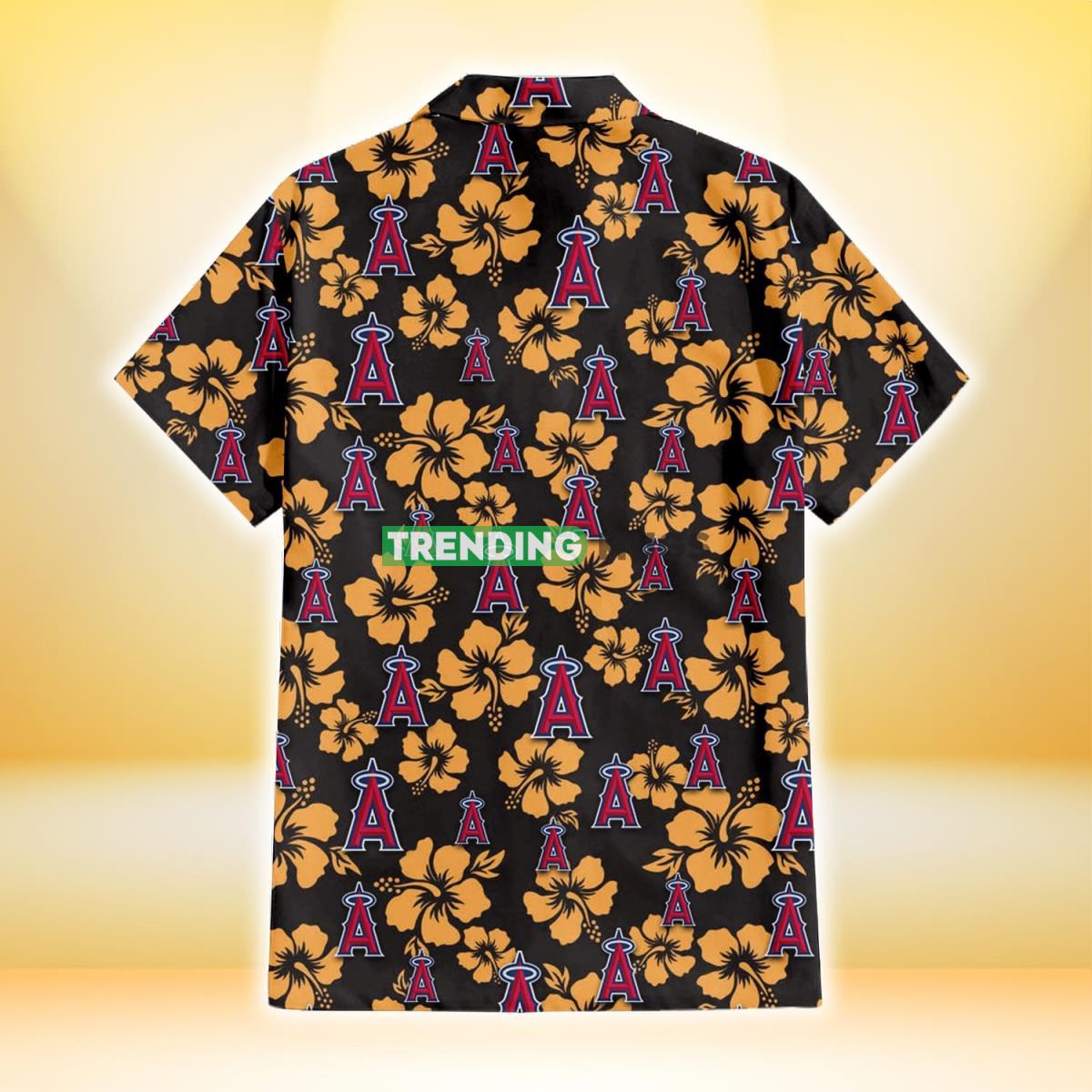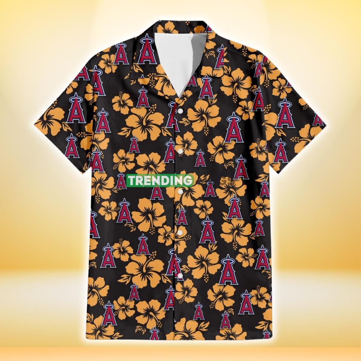 Some of the Los Angeles Angels Tiny Yellow Hibiscus Black Background 3D Hawaiian Shirt photos