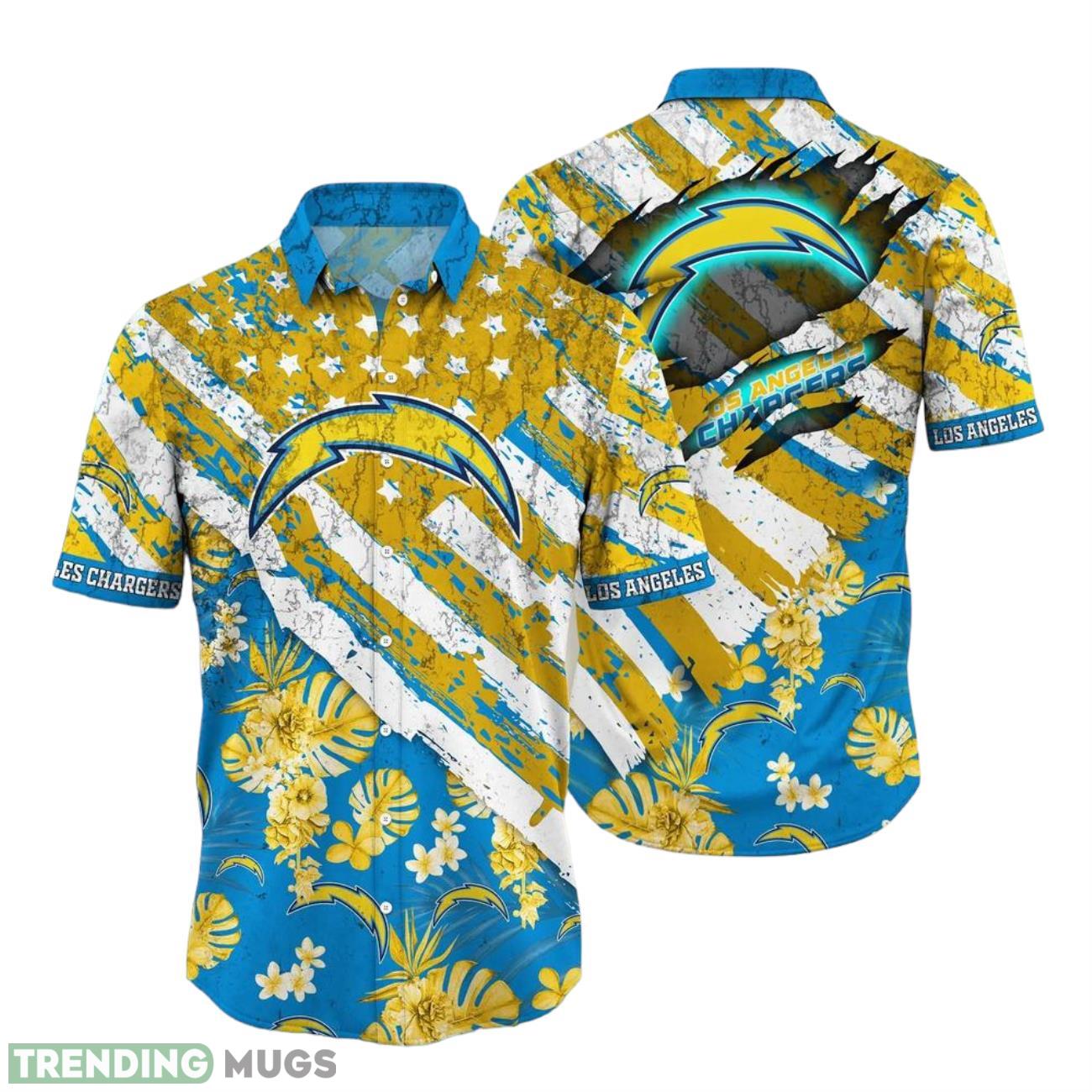Los Angeles Chargers 3D Hawaiian Shirt NFL Sport Summer Gift Floral Print American Flag Pattern Hawaiian Shirt