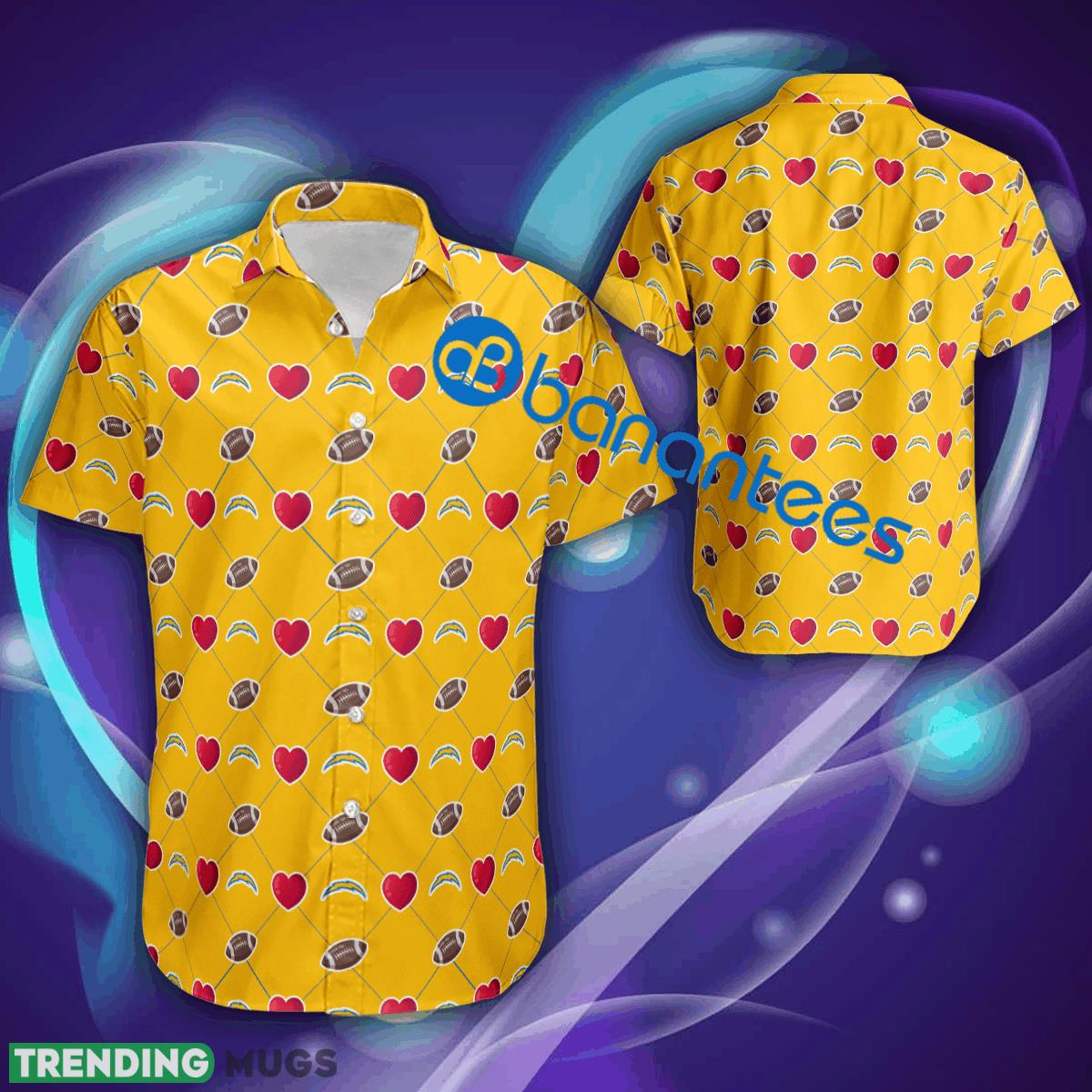 Los Angeles Chargers Logo Heart Pattern Valentines Days Hawaiian Shirt All Over Print Gift For Fans Details: