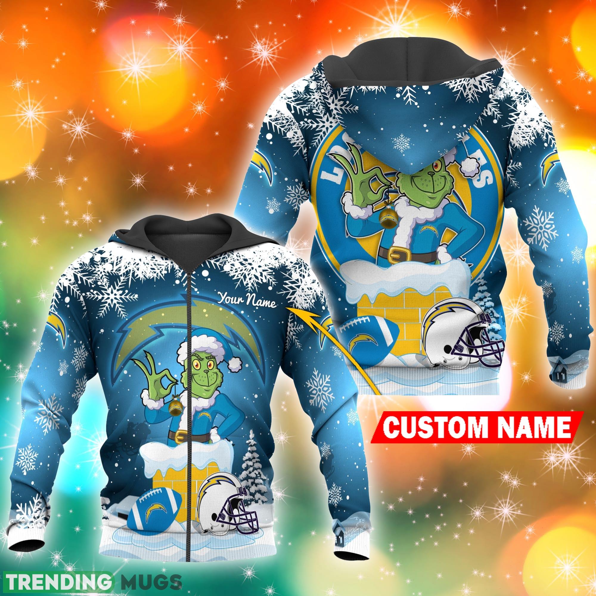 Los Angeles Chargers NFL Christmas Grinch in Chimney 3D Hoodie Pullover Prints Custom Name Information