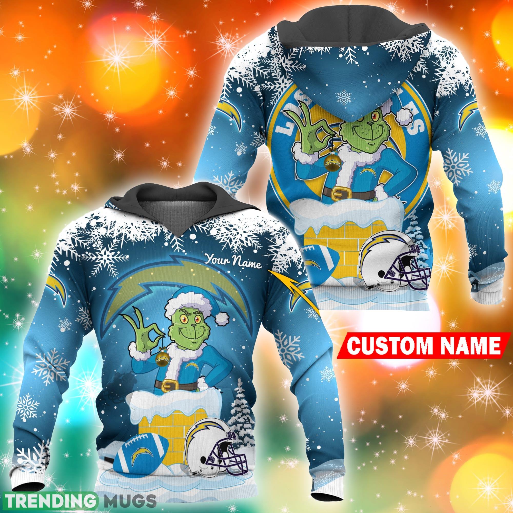 Los Angeles Chargers NFL Christmas Grinch in Chimney 3D Hoodie Pullover Prints Custom Name
